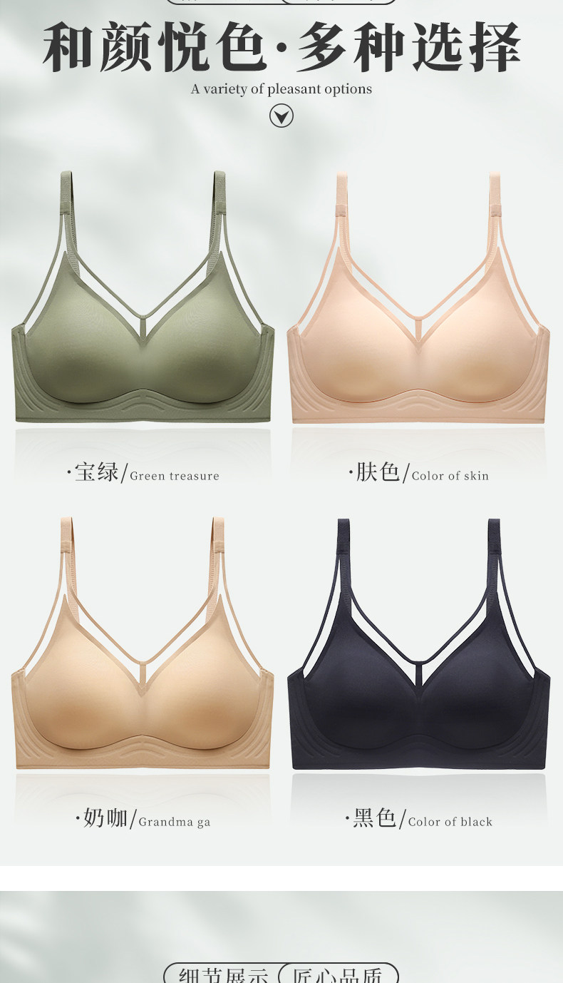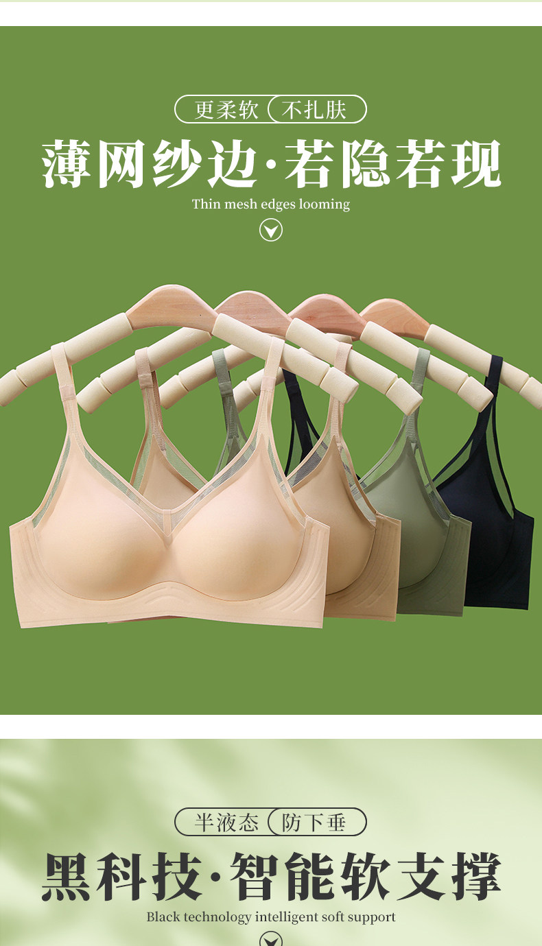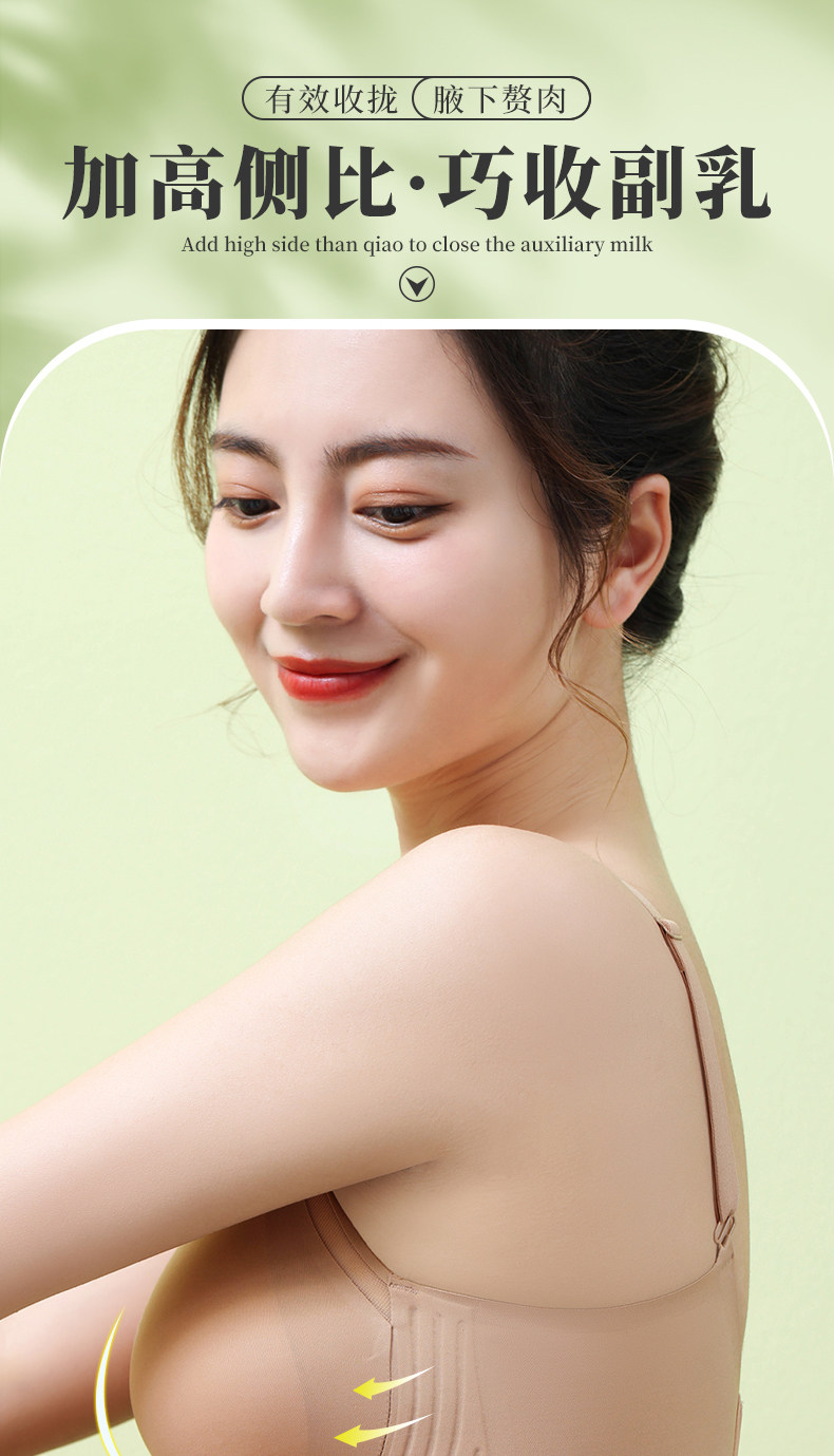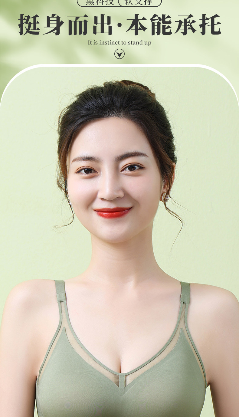 Japan's seamless sports latex underwear for women without rims, big breasts, small bra, push-up, push-up, accessory breast adjustment type