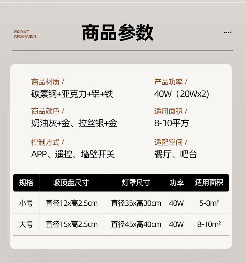 颜色分类 拉丝银色 小号 餐吊灯 [三色变光],奶油灰色 小号 餐吊灯 [三色变光],拉丝银色 小号 餐吊灯 [2.4G无极调光]送遥控,奶油灰色 小号 餐吊灯 [2.4G无极调光]送遥控,拉丝银色 小号 餐吊灯 [天猫精灵无极调光]送遥控,奶油灰色 小号 餐吊灯 [天猫精灵无极调光]送遥控,拉丝银色 小号 餐吊灯 [已接入米家APP]送遥控,奶油灰色 小号 餐吊灯 [已接入米家APP]送遥控,拉丝银色 大号餐吊灯 [三色变光],奶油灰色 大号餐吊灯 [三色变光],拉丝银色 大号餐吊灯 [2.4G无极调光]送遥控,奶油灰色 大号餐吊灯 [2.4G无极调光]送遥控,拉丝银色 大号餐吊灯 [天猫精灵无极调光]送遥控,奶油灰色 大号餐吊灯 [天猫精灵无极调光]送遥控,拉丝银色 大号餐吊灯 [已接入米家APP]送遥控,奶油灰色 大号餐吊灯 [已接入米家APP]送遥控