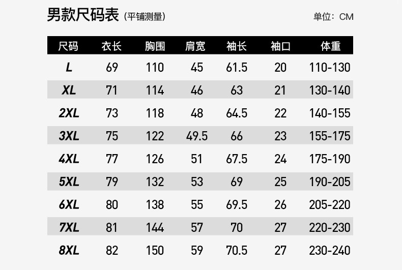 Size 3XL,2XL,L,XL,4XL,5XL,6XL,7XL,8XL