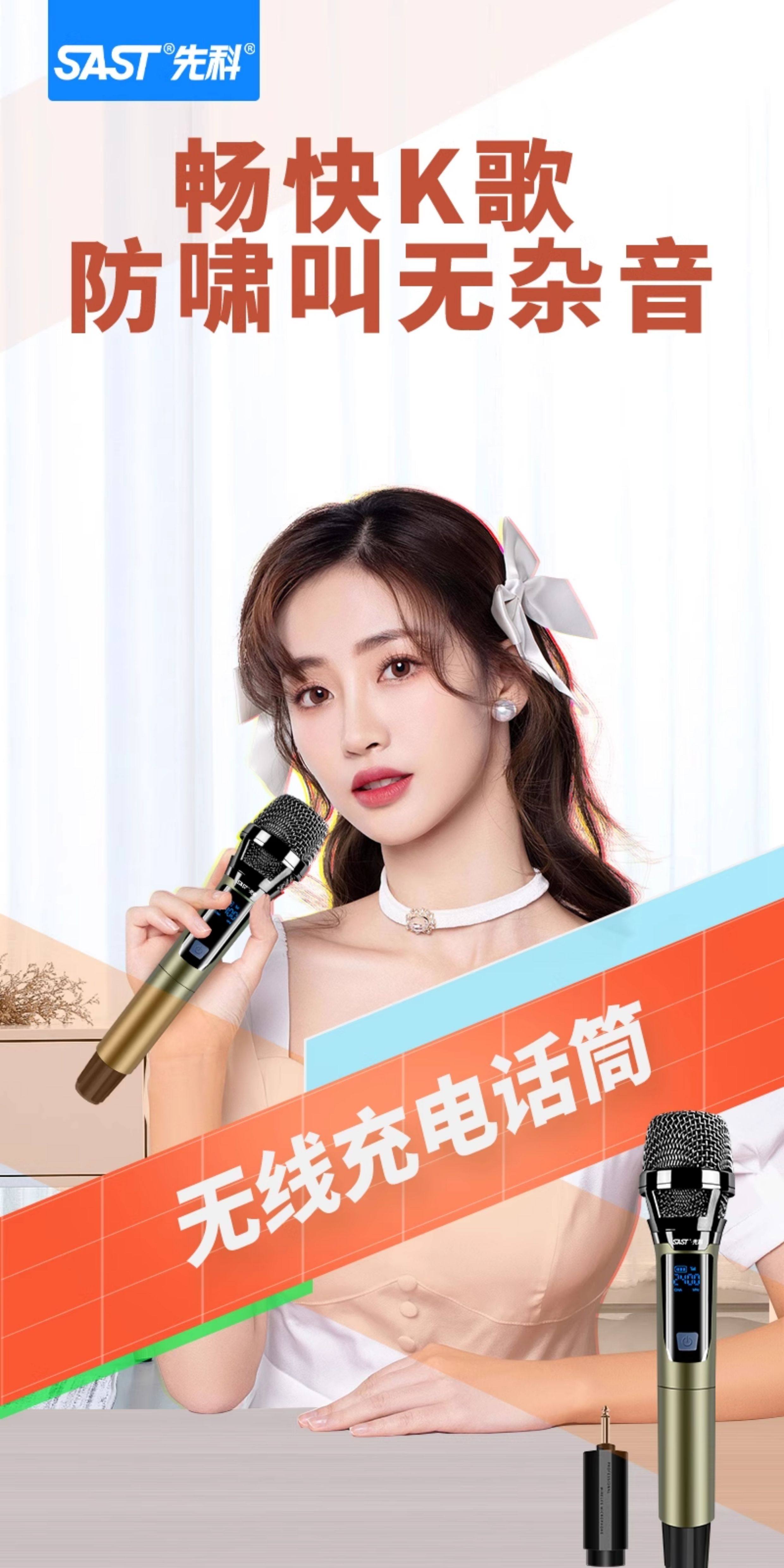 Xianke Rechargeable Wireless Microphone, One-To-Two Universal Microphone, U-Band Fm, Home Karaoke Handheld Microphone