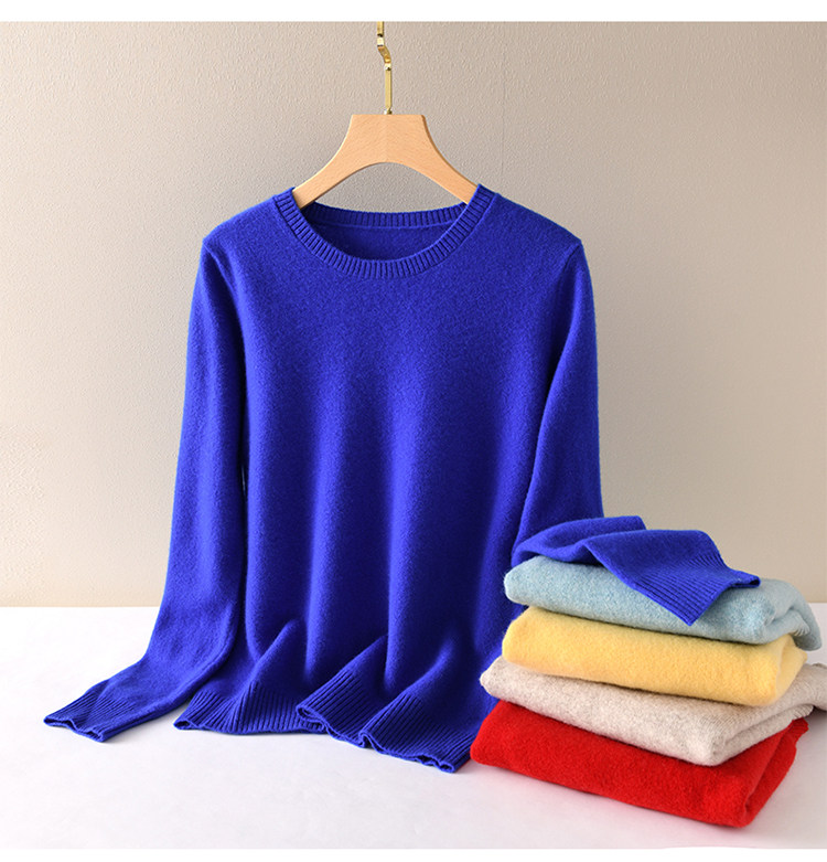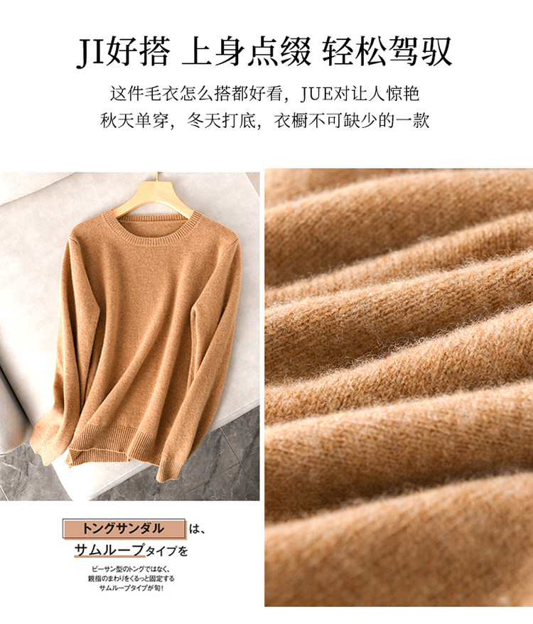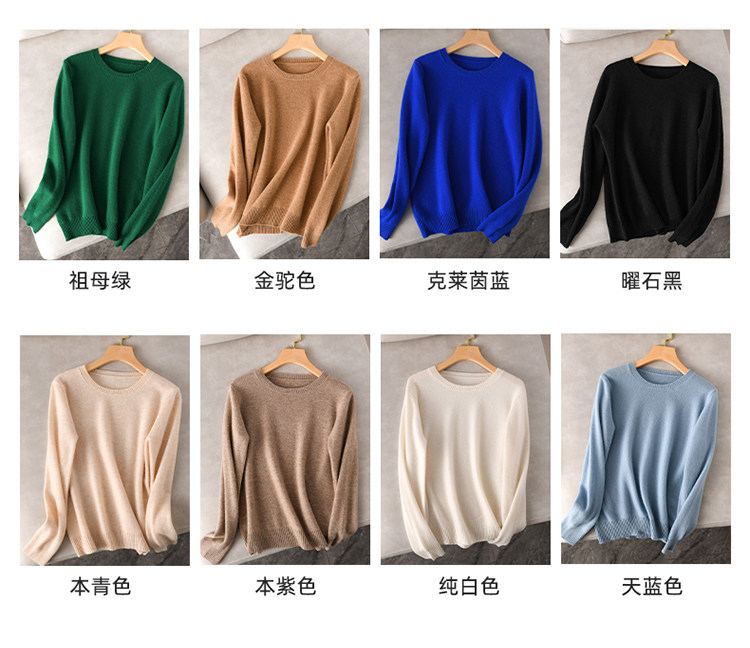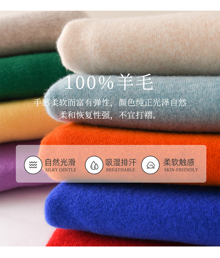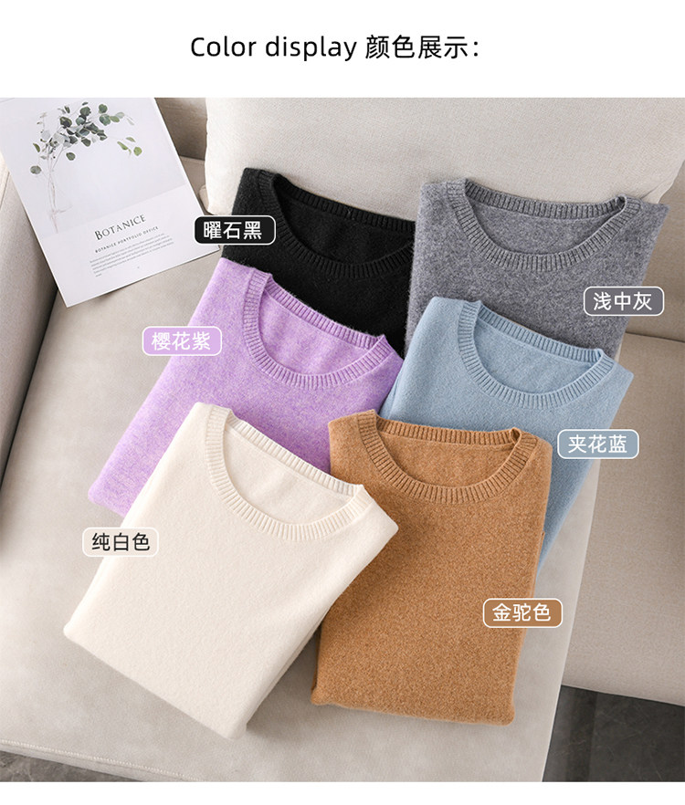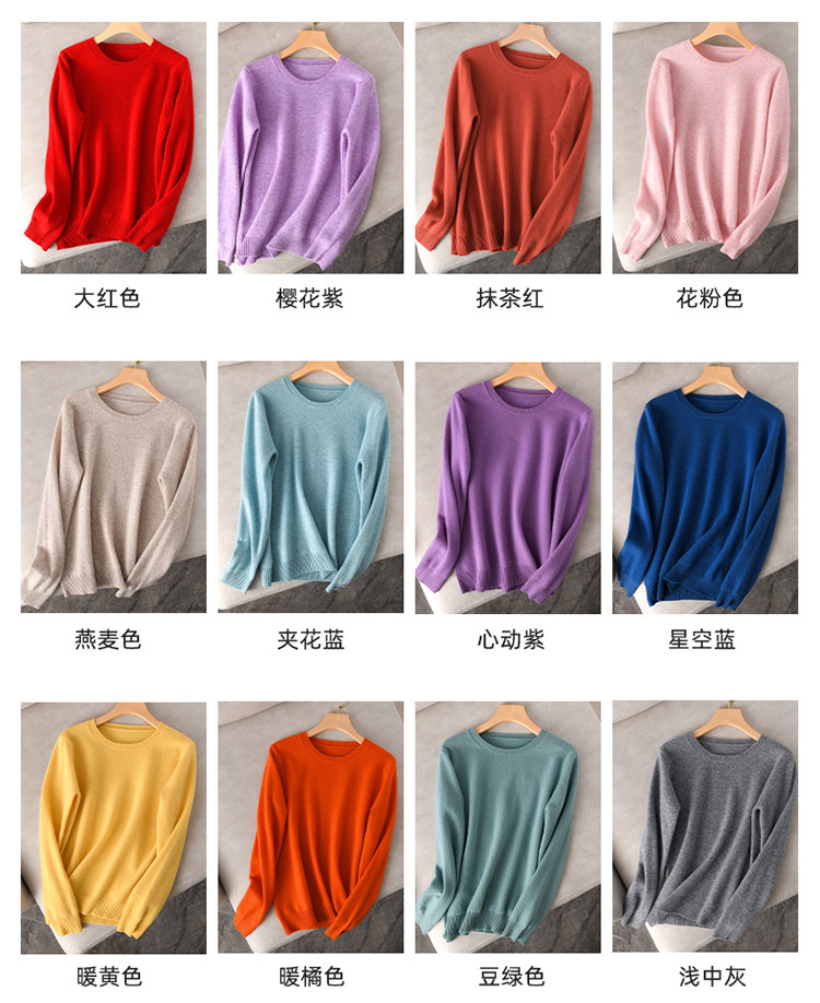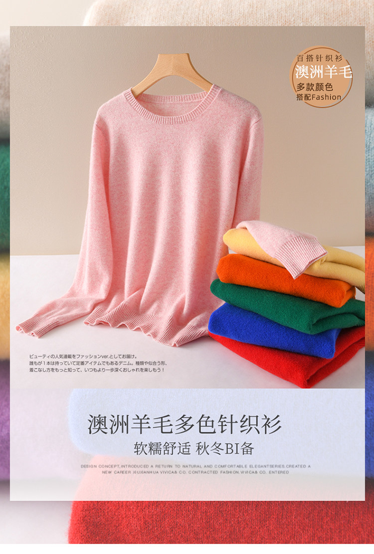 随意搭100%纯羊毛衫女圆领毛衣秋冬新款打底衫羊绒内搭保暖针织衫
