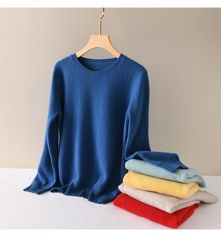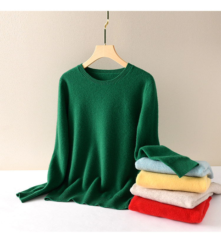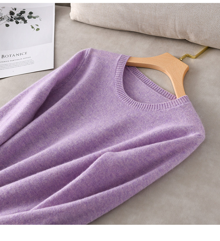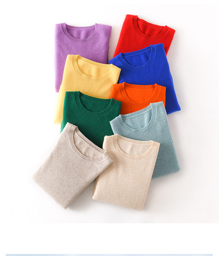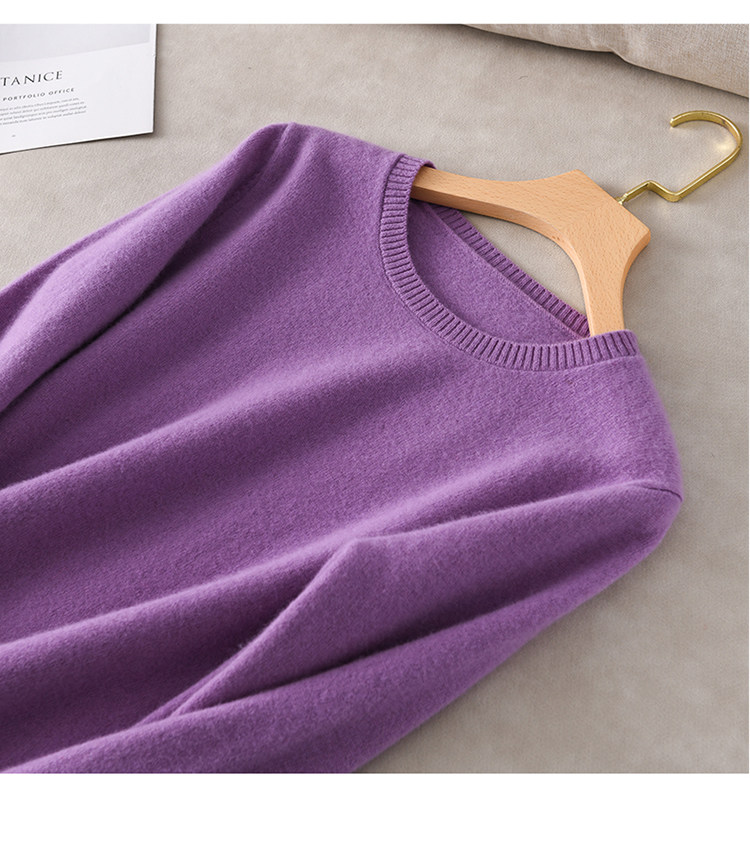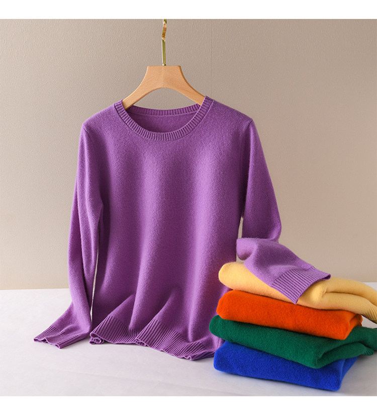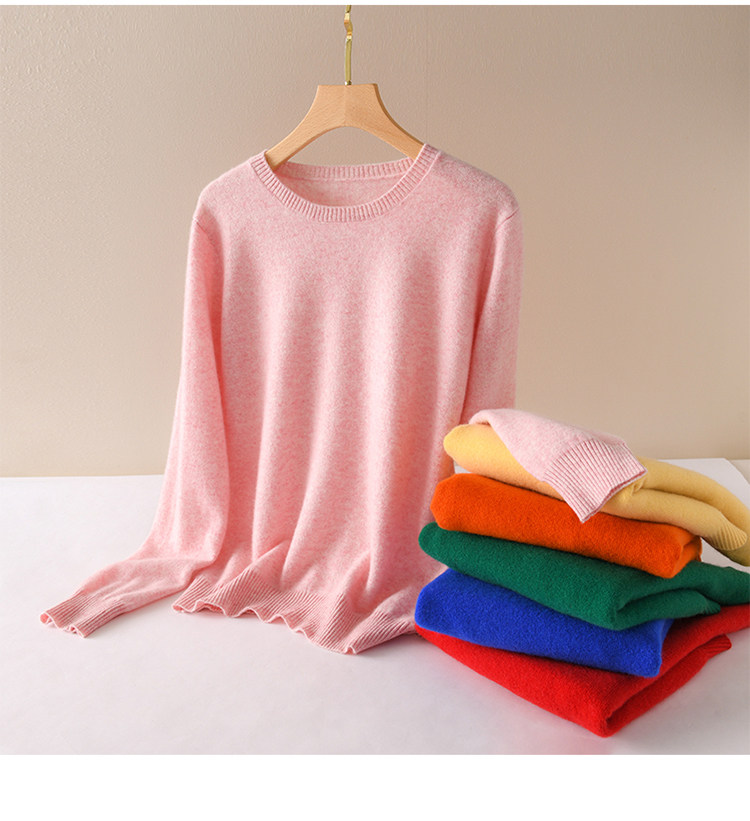 随意搭100%纯羊毛衫女圆领毛衣秋冬新款打底衫羊绒内搭保暖针织衫