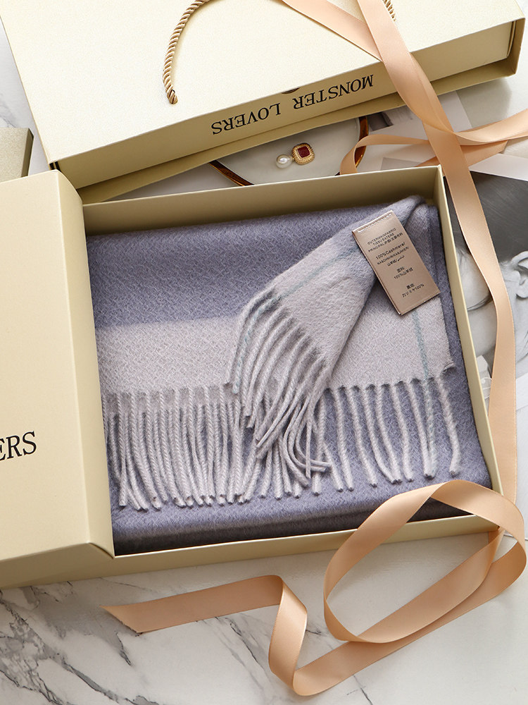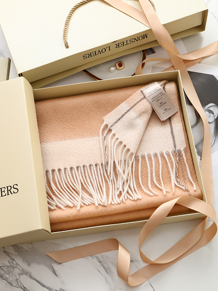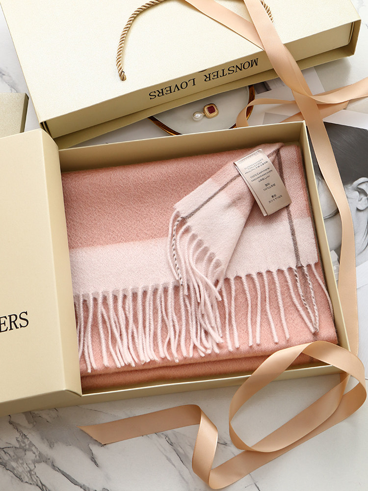 100% Cashmere Scarf, Winter Women's Double-Sided Warm High-End Gift Box Scarf, Gift for Girlfriend or Mother