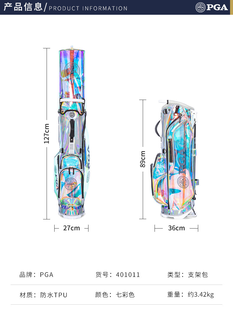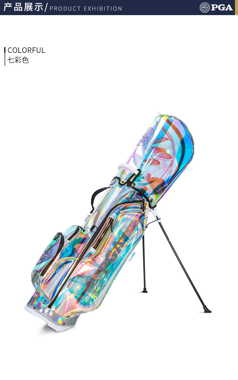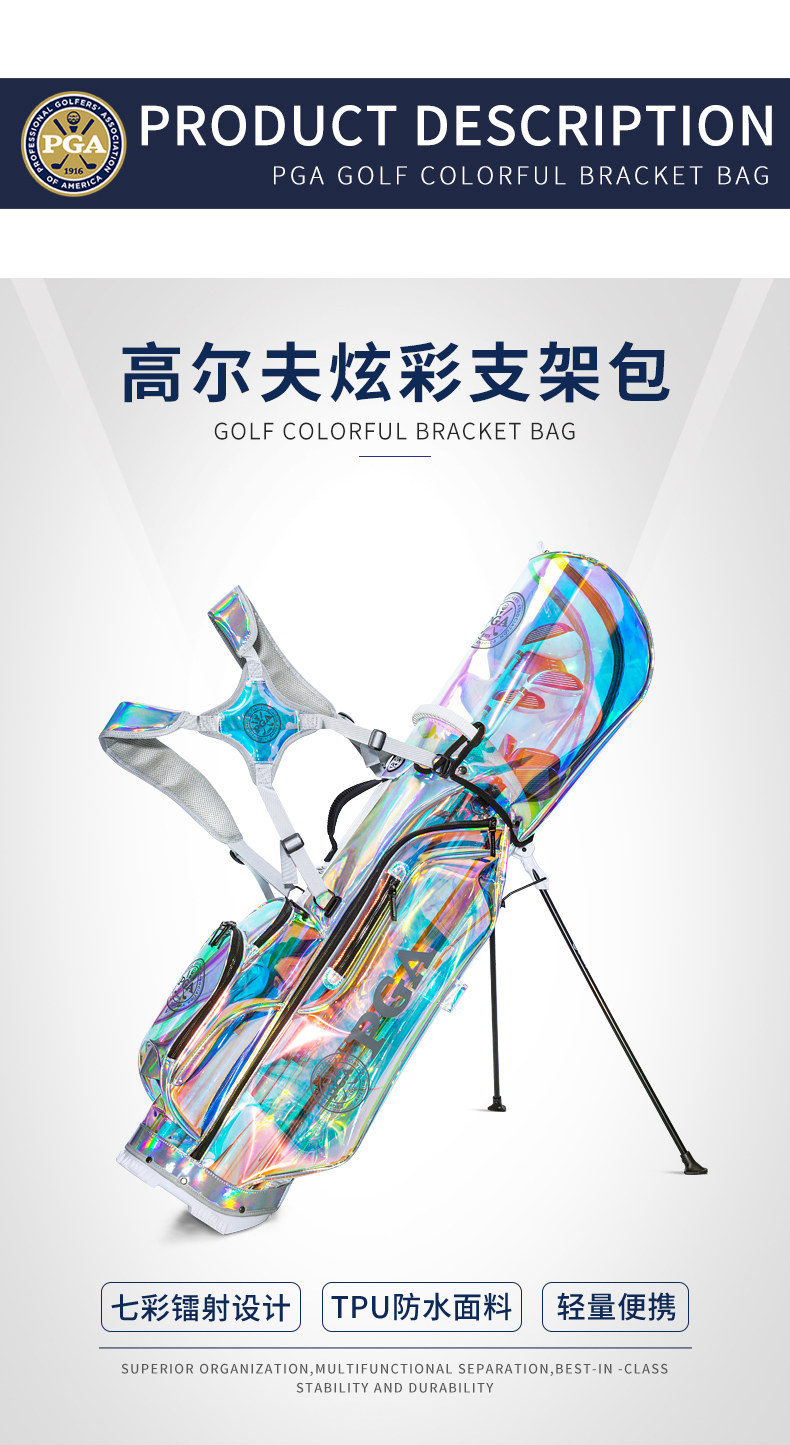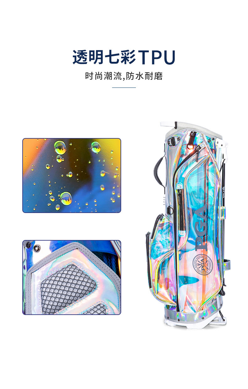 美国PGA 高尔夫炫彩支架包 女士球包 透明七彩TPU 轻量便携 防水