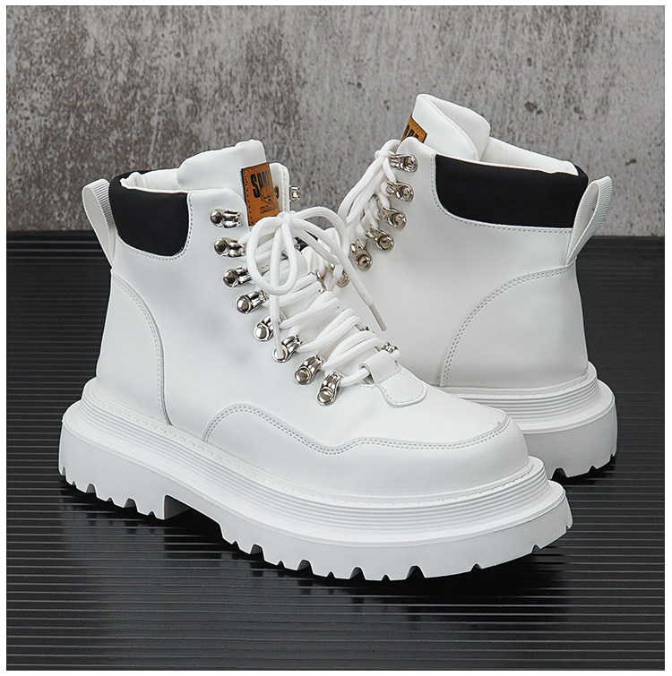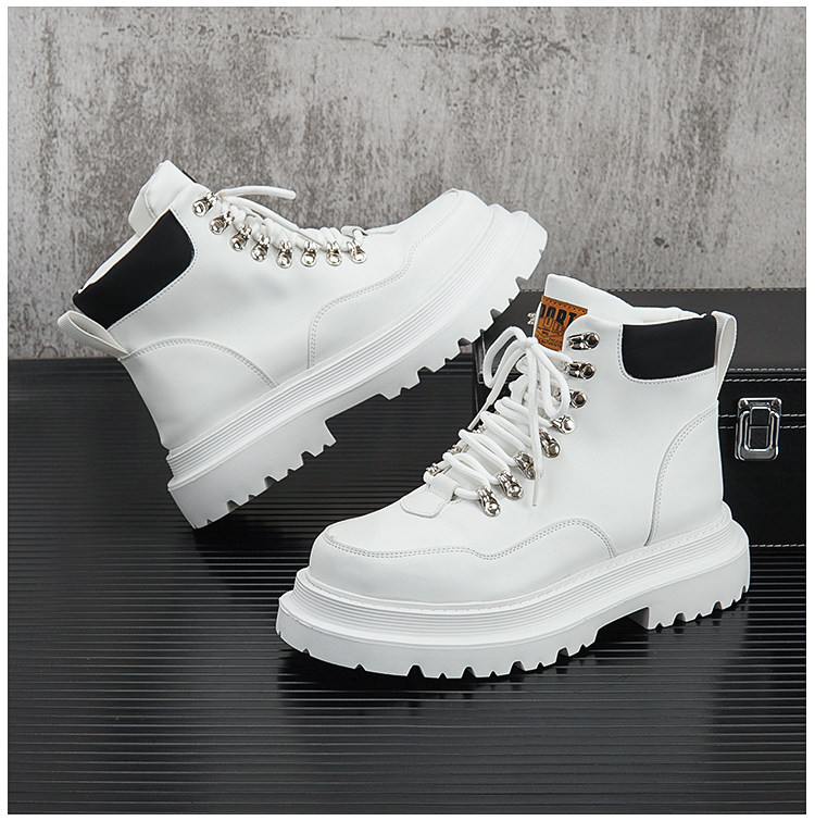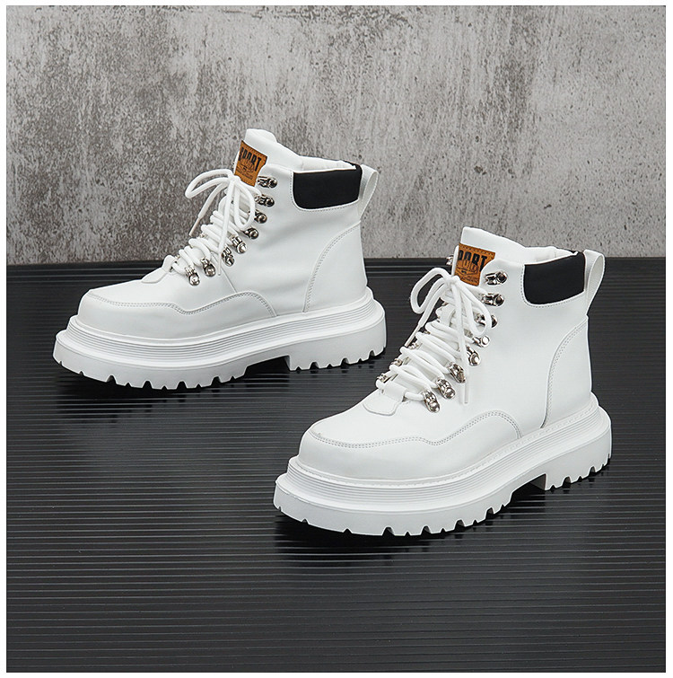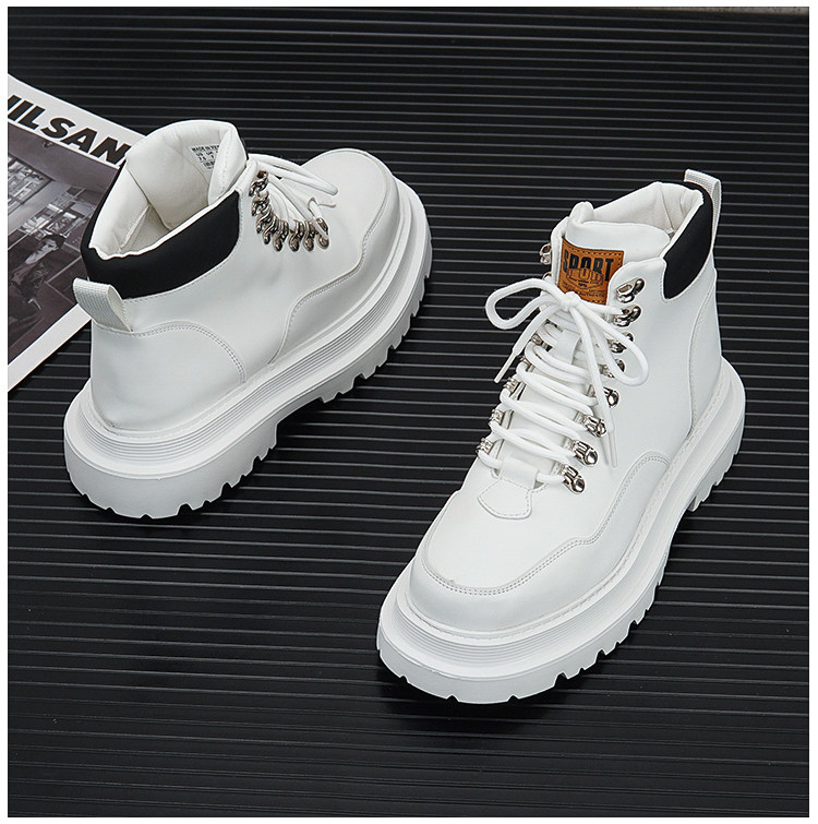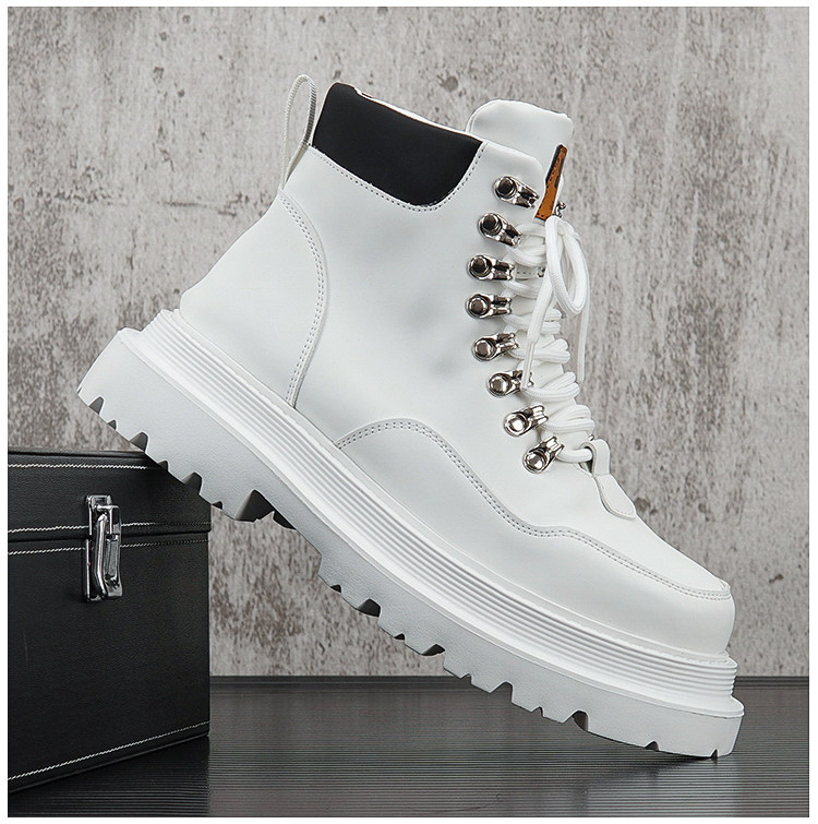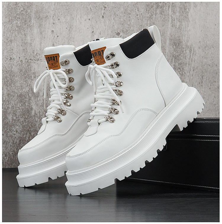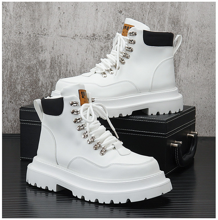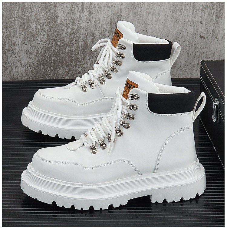 Botas Martin para hombre 2025, nuevo estilo de invierno, además de zapatos de cuero de caña alta cálidos de terciopelo, suela gruesa para hombre, zapatos blancos para hombre con realce interior