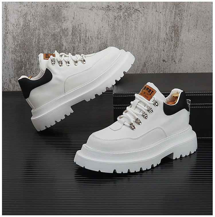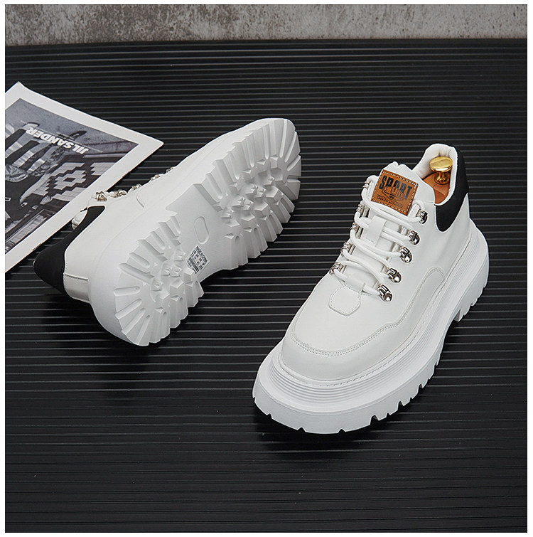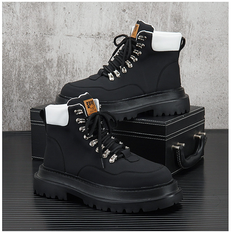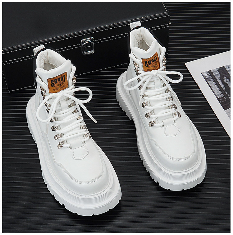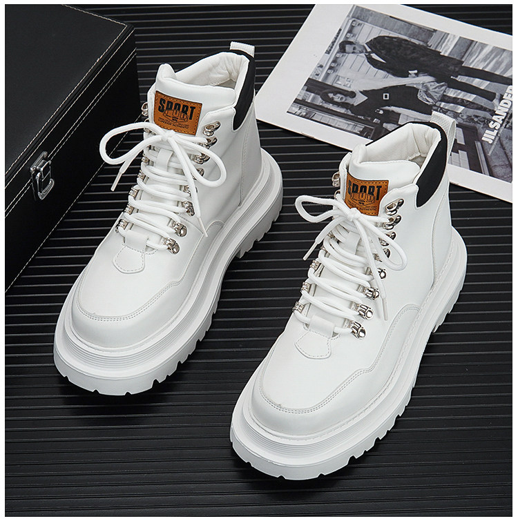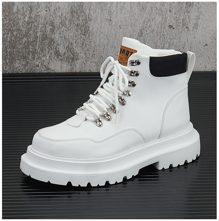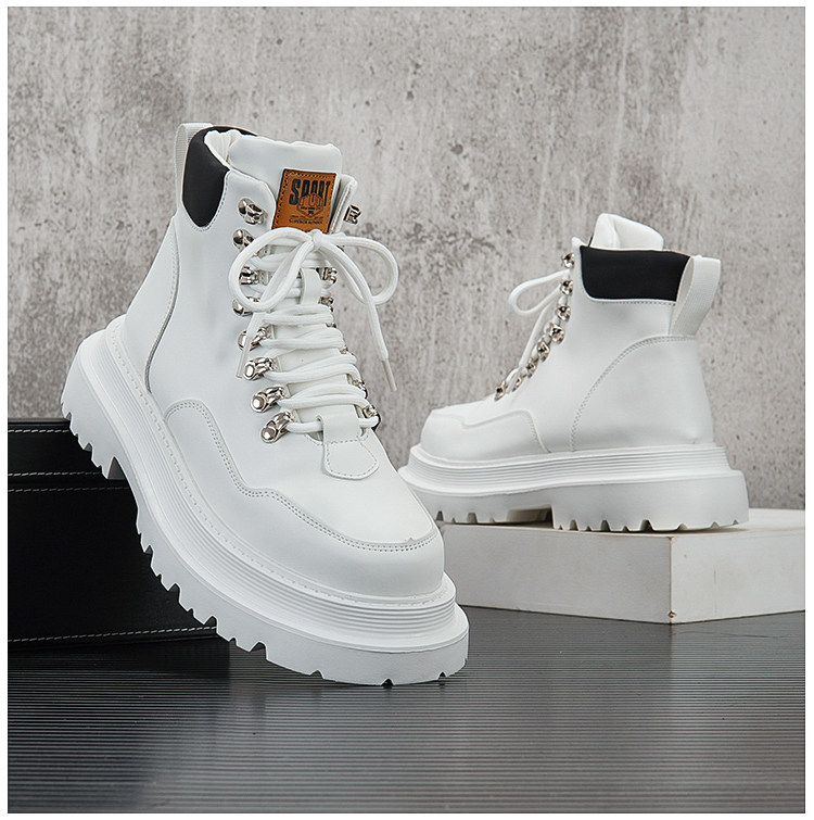 Botas Martin para hombre 2025, nuevo estilo de invierno, además de zapatos de cuero de caña alta cálidos de terciopelo, suela gruesa para hombre, zapatos blancos para hombre con realce interior