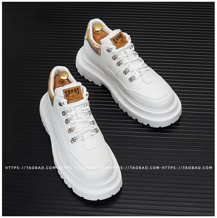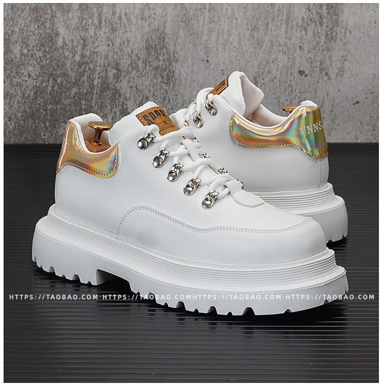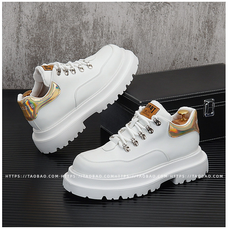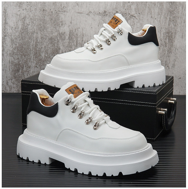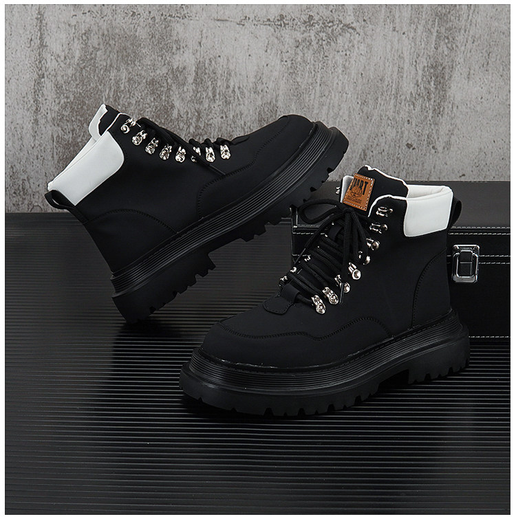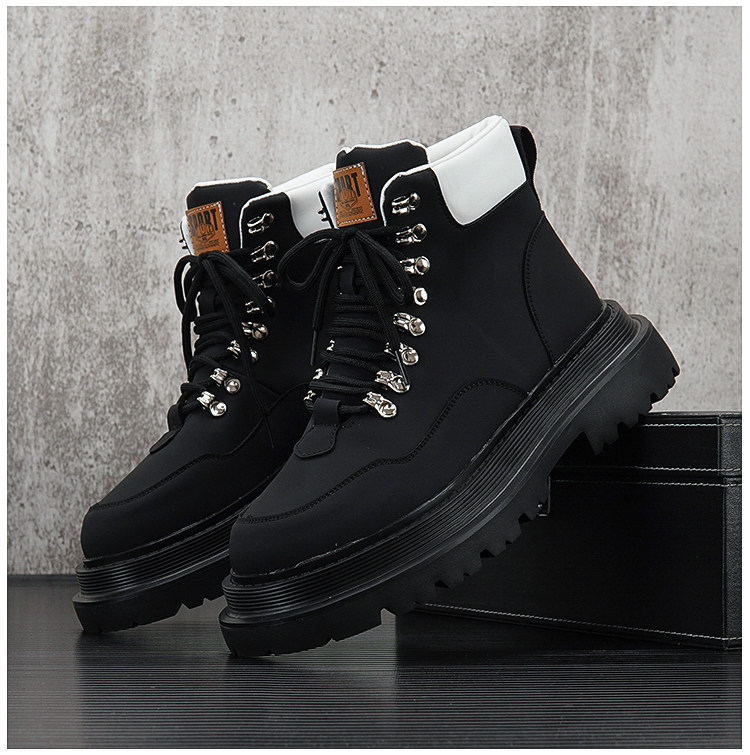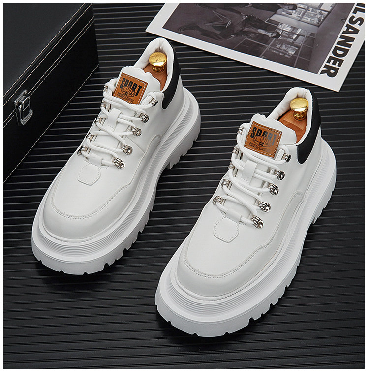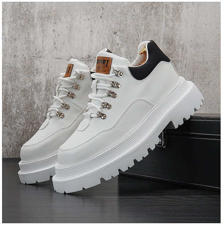 Botas Martin para hombre 2025, nuevo estilo de invierno, además de zapatos de cuero de caña alta cálidos de terciopelo, suela gruesa para hombre, zapatos blancos para hombre con realce interior