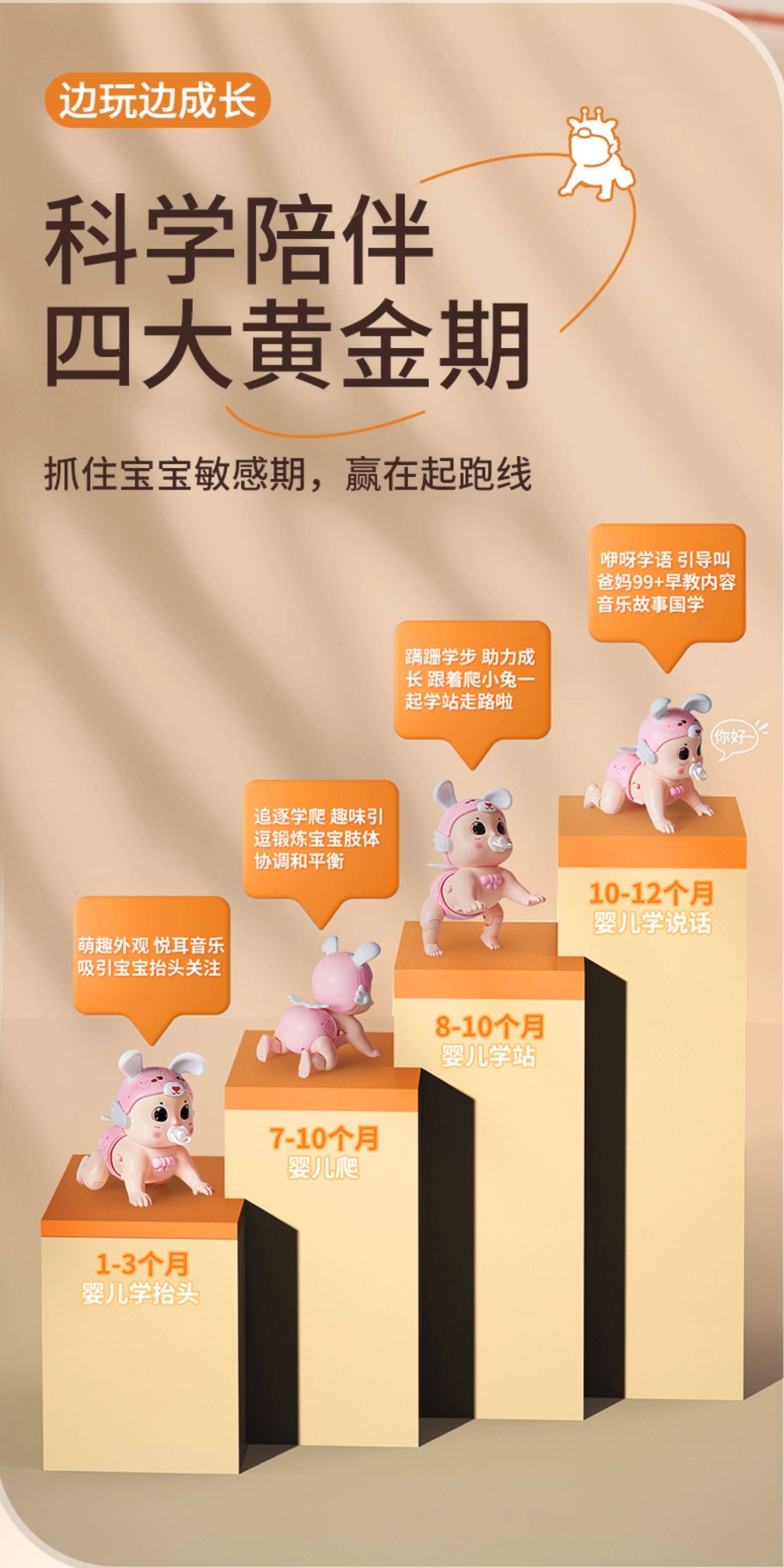 Baby Toys for 0-1 Year Olds to Learn to Crawl, Guide Them to Raise Their Heads, Practice Training, Educational Early Learning, 3-6 Month Old Baby, Electric Crawling Toy