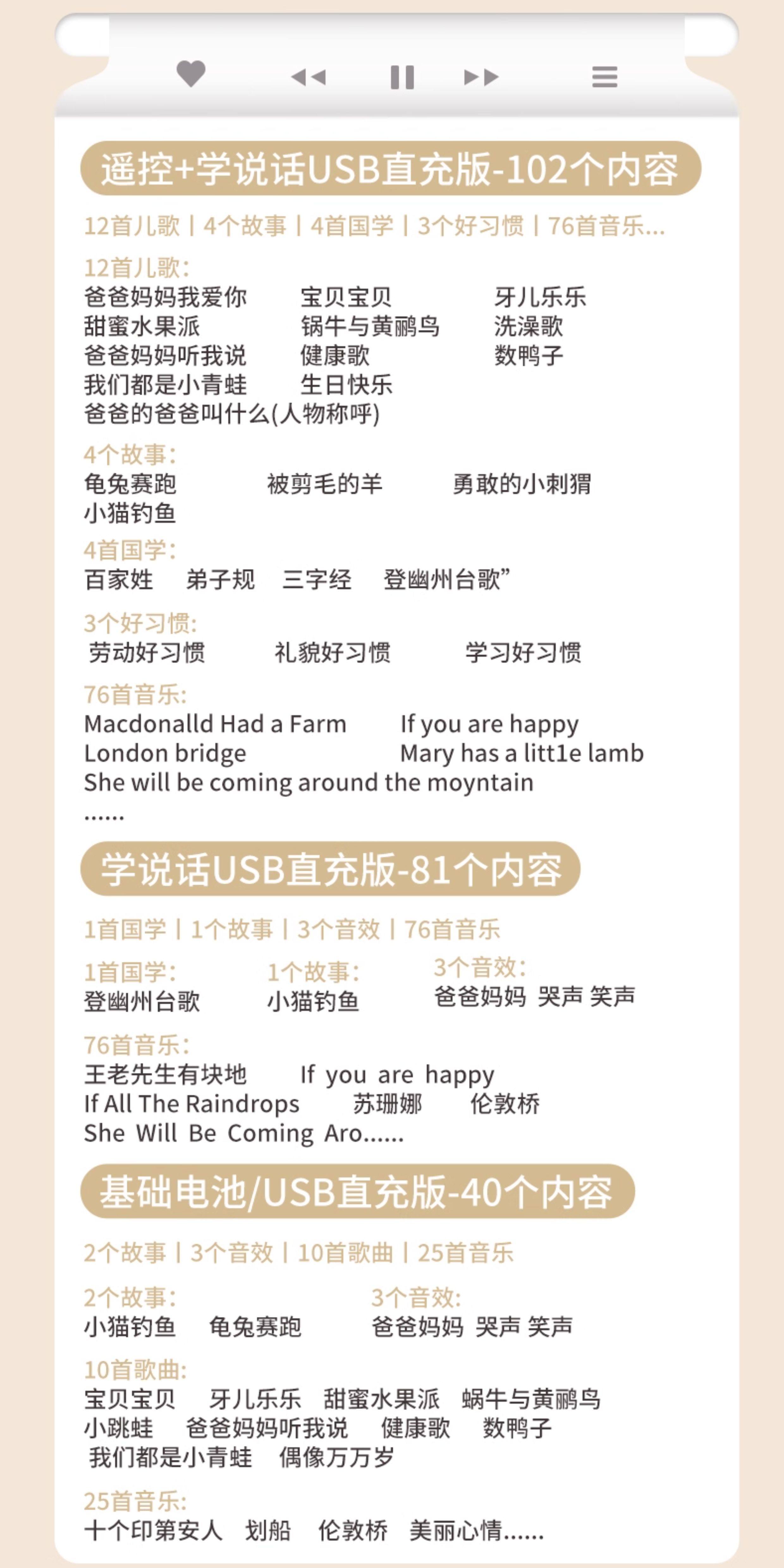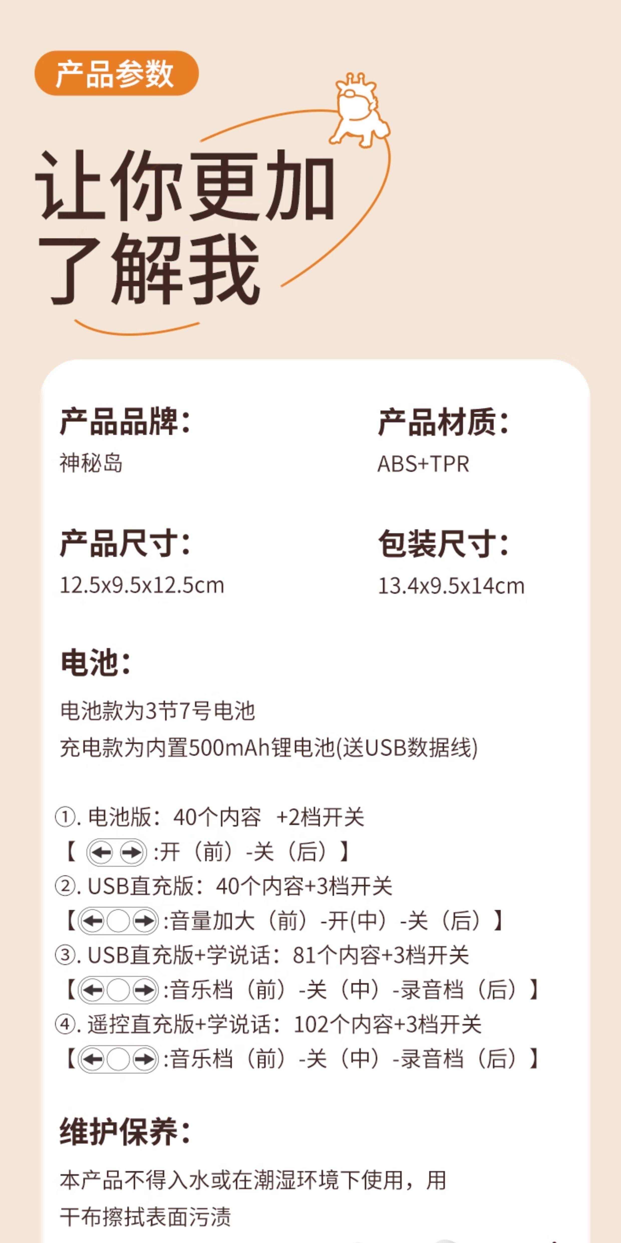 Color Classification ✅Same Day Delivery✅Optional Free Shipping Via Sf Express✅Write Greeting Cards.,【Battery Version❤Cute Rabbit Fan] 40+ Contents [25 Music + 10 Songs + Stories + Sound Effects + Learn to Call Parents.],【Battery Version❤Rick Green】40+ Contents【25 Music+10 Songs+Stories+Sound Effects+Learn to Call Parents】,[USB Direct Charging Version❤Cute Rabbit Fan] 40+ Contents [25 Music + 10 Songs + Stories + Sound Effects + Learn to Call Parents.],[USB Direct Charging Version❤Cute Rabbit Blue] 40+ Contents [25 Music + 10 Songs + Stories + Sound Effects + Learn to Call Parents.],[USB Direct Charging Version❤【Hermès Orange】40+ Content Items 【25 Music + 10 Songs + Stories + Sound Effects + Learn to Call Mom and Dad】,Learn to Talk + USB Direct Charging❤Cute Rabbit Fan] 81+ Content [76 Music + Ancient Poems + Stories + Sound Effects + Learning to Call Parents.],Learn to Talk + USB Direct Charging❤Rick Green】81+ Content【76 Music + Ancient Poems + Stories + Sound Effects + Learning to Call Parents.】,【Newly Upgraded Remote Control Version☀Any On-Demand + 101 Contents + Learn to Speak + USB Direct Charging Lithium Battery]❤Cute Rabbit Powder#1,【Newly Upgraded Remote Control Version☀Any On-Demand + 101 Contents + Learn to Speak + USB Direct Charging Lithium Battery]❤Cute Rabbit Blue#1,【Newly Upgraded Remote Control Version☀Any On-Demand + 101 Contents + Learn to Speak + USB Direct Charging Lithium Battery]❤Love Horse Orange#1,【Newly Upgraded Remote Control Version☀Any On-Demand + 101 Contents + Learn to Speak + USB Direct Charging Lithium Battery]❤Rick Green#1,【Newly Upgraded Remote Control Version☀Any On-Demand + 101 Contents + Learn to Speak + USB Direct Charging Lithium Battery]❤Lucky Dragon Treasure#1,#Authenticity Guaranteed,#Flagship Quality,✅Upgraded Lithium Battery with Long Battery Life✅Silicone Soft Tentacles.,✅Heavyweight Upgrade: Remote Control✅One-Click On-Demand Access to 101+ Early Childhood Education Resources.,【Same-Day Dispatch】Add to Favorites & Cart for Priority Checkout! Lightning-Fast Shipping.,[Sf Express Free Shipping] Please Note When Placing an Order or Contact Customer Service for Notes.,✅Same Day Delivery✅Optional Free Shipping Via Sf Express✅Writing Greeting Cards,✅Heavyweight Upgrade: Remote Control✅One-Click On-Demand Access to 101+ Early Childhood Education Resources.,✅ Upgraded Lithium Battery with Long Battery Life ✅ Silicone Soft Tentacles