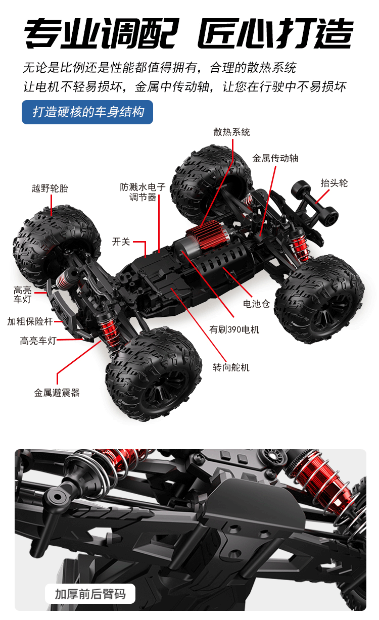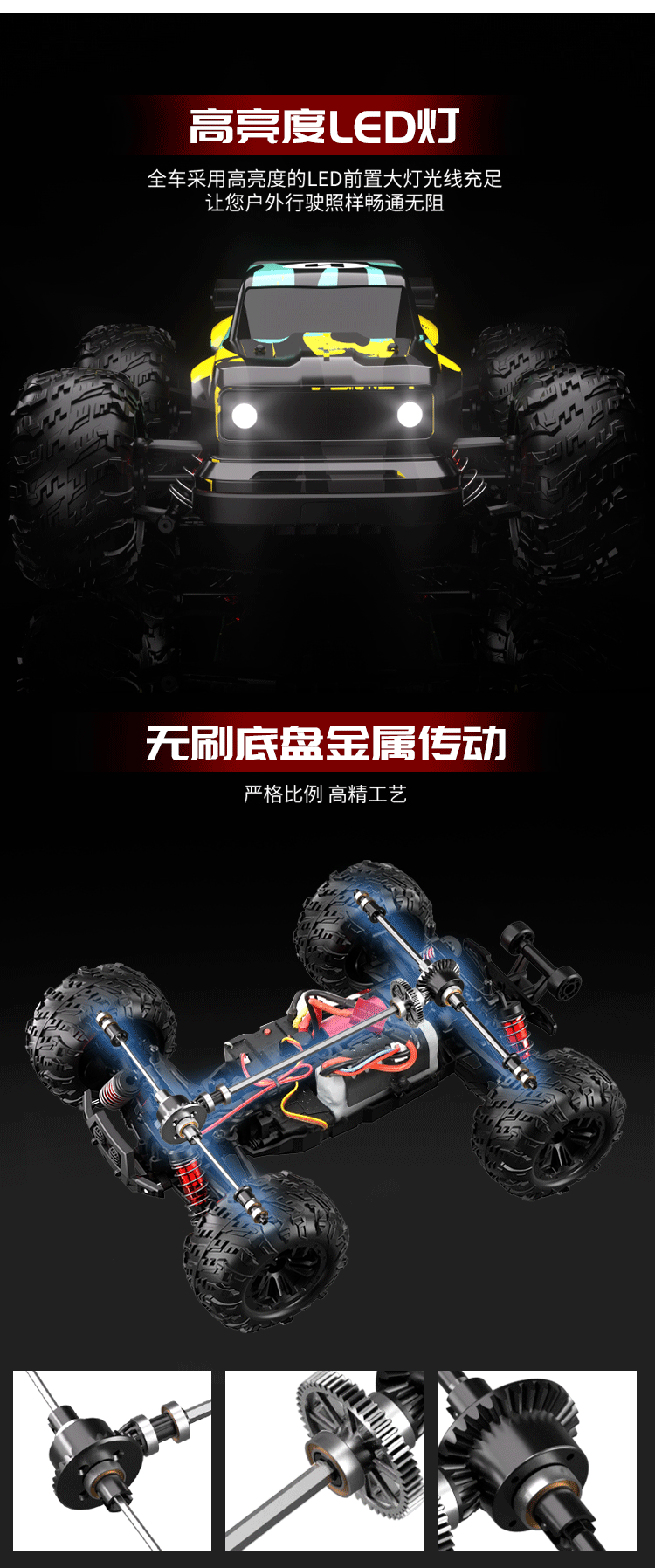 Brushless Professional Rc Remote Control Car Toy for Adults, Four-Wheel Drive, High-Speed Drifting, Off-Road Climbing, Big-Wheel Racing Car for Boys