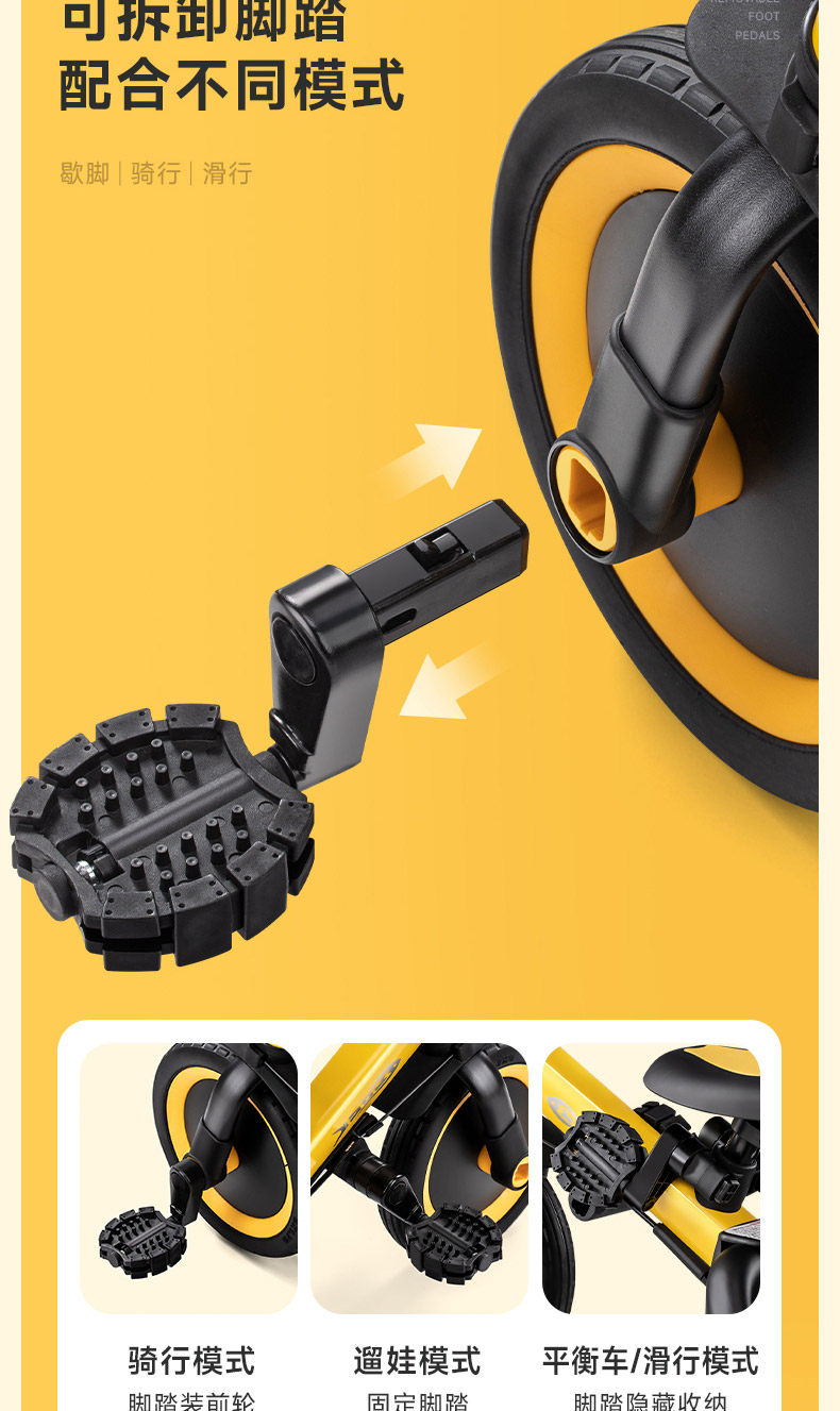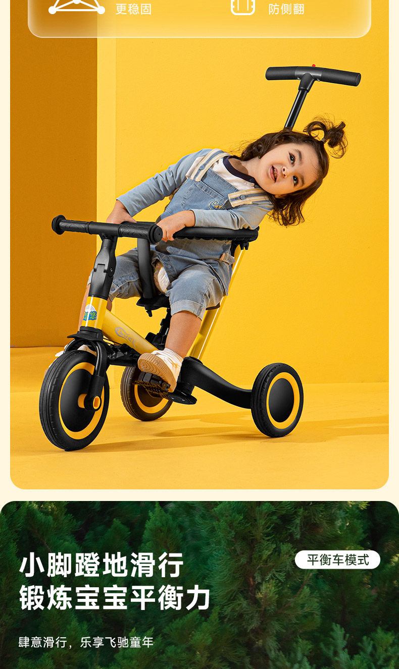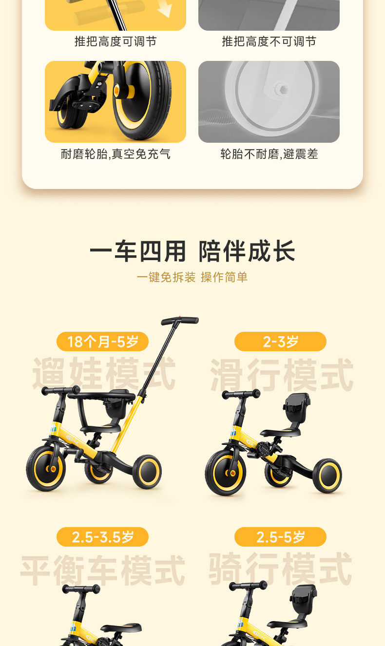 儿童三轮车脚踏车平衡车滑步车多功能宝宝溜娃手推车三合一1-5岁