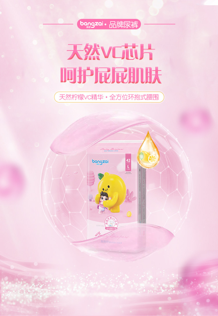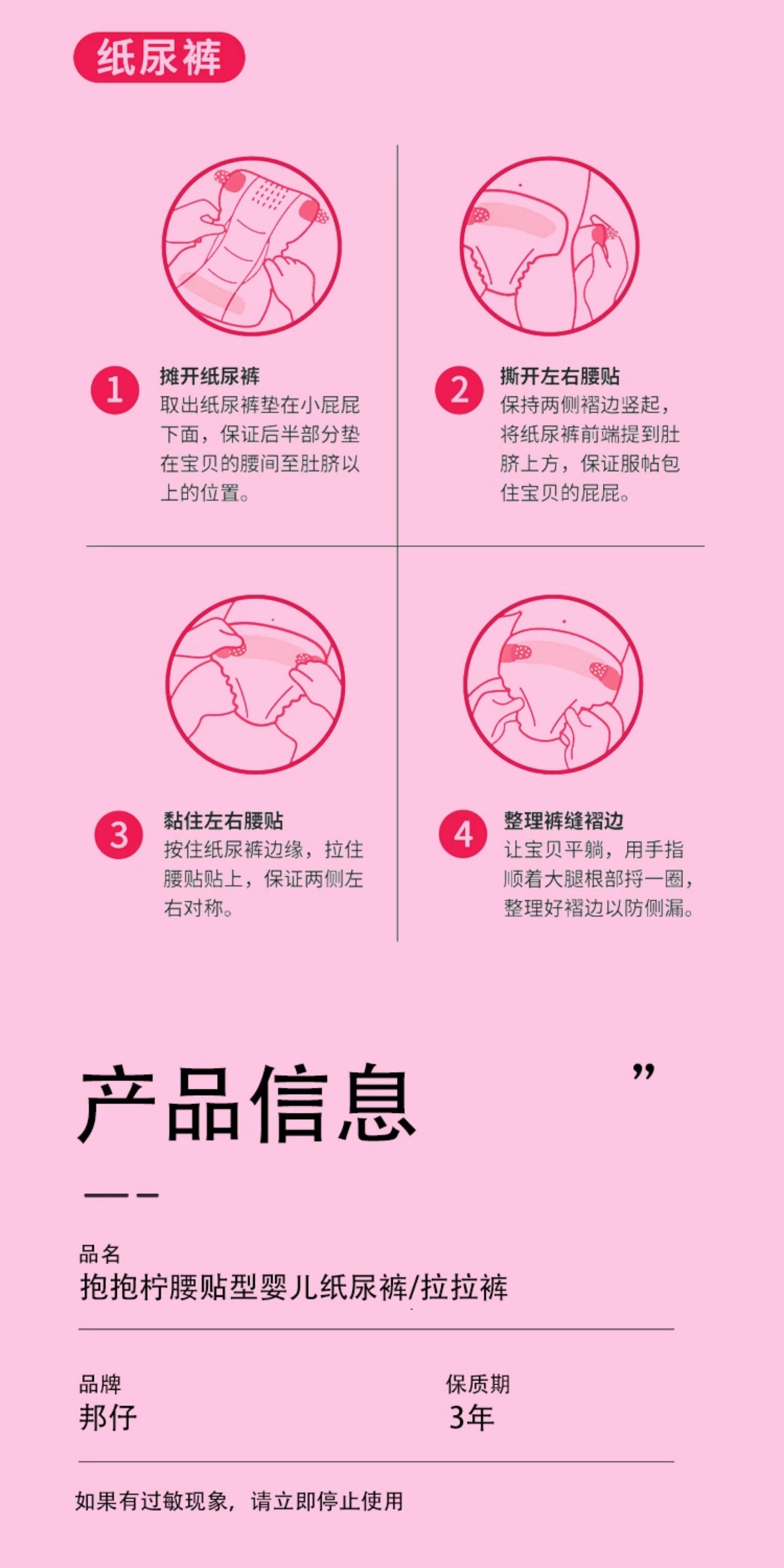 邦仔柠檬VC纸尿裤拉拉裤nb码m码xl码婴儿宝宝超薄透气干爽尿不湿