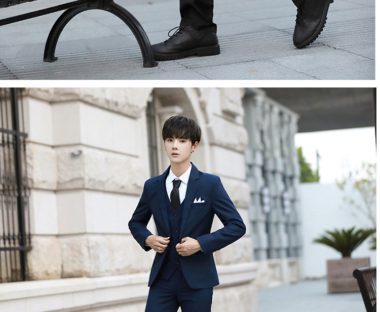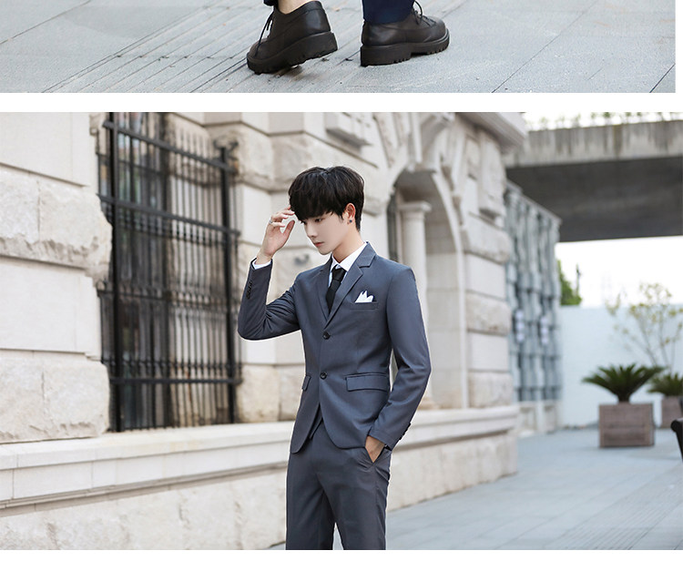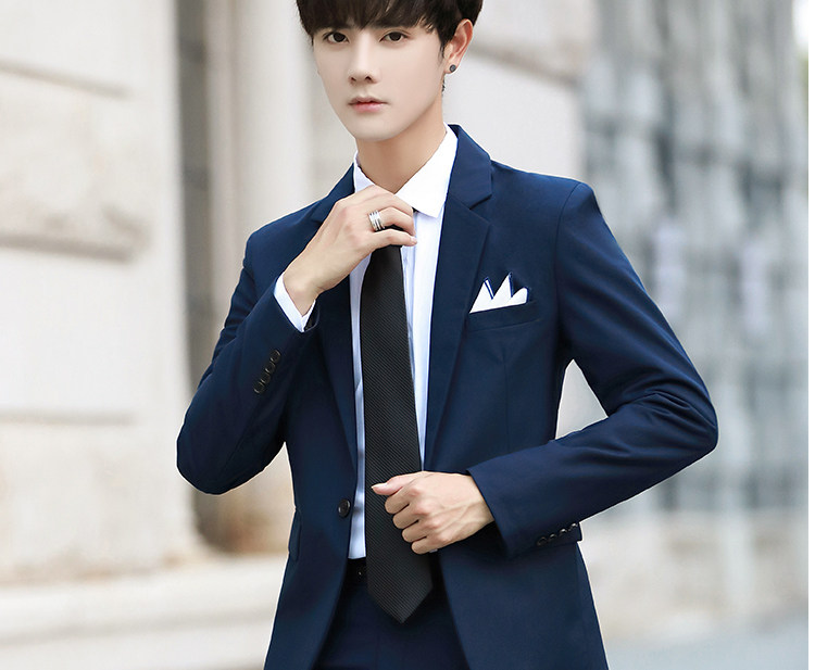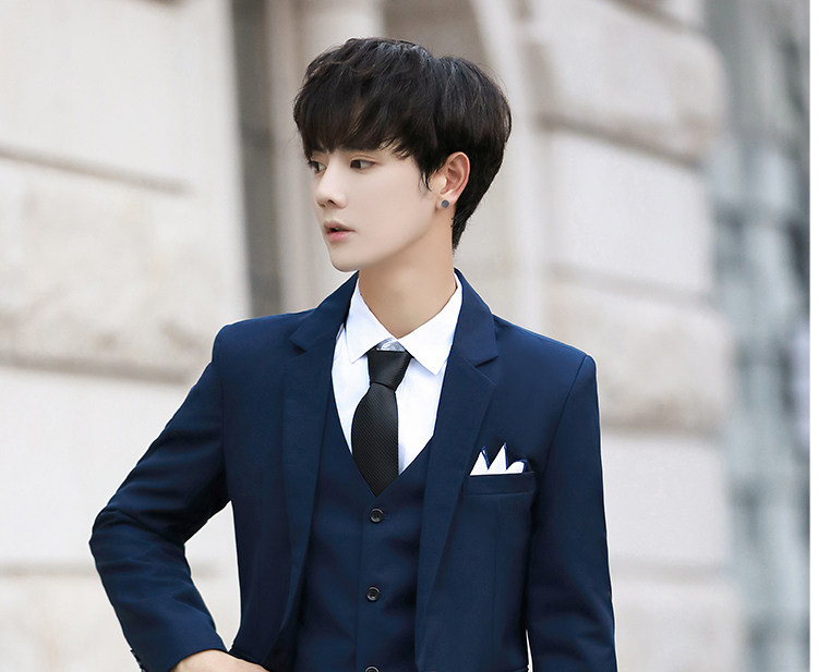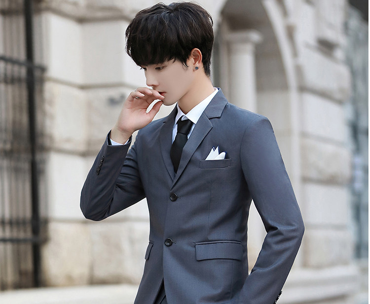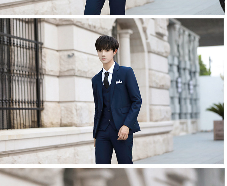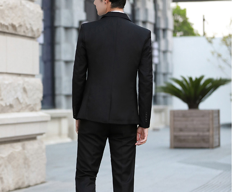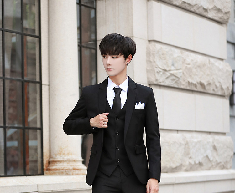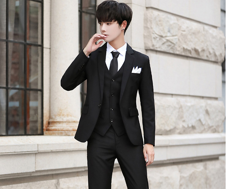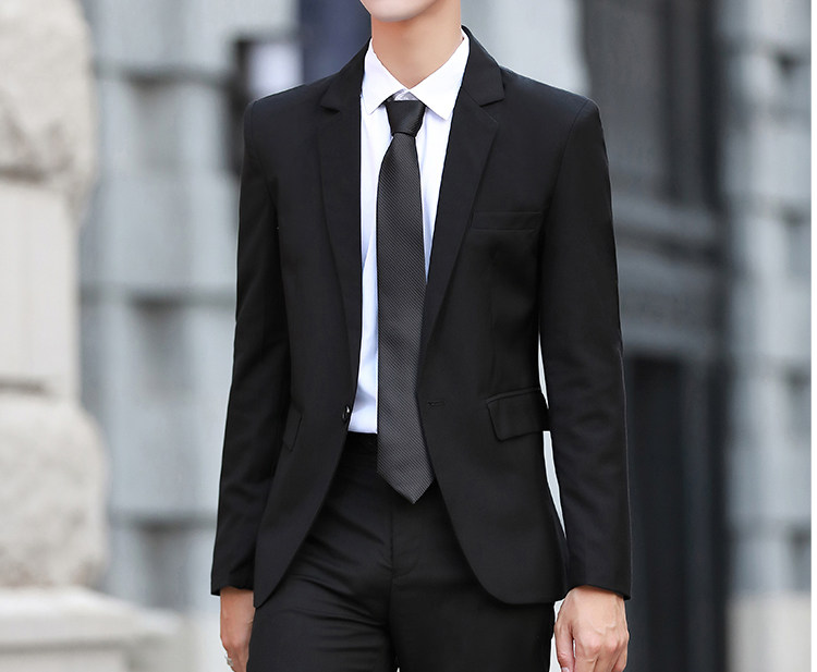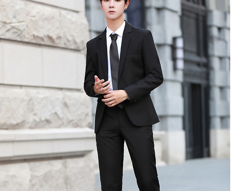 青少年高中生成人礼服西装男学生正装西服套装男修身外套黑色一套