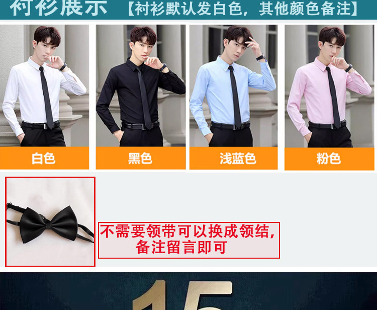 颜色 1粒扣/黑色【西服+西裤+白衬衫+马甲】+领带+皮带+领带夹+防尘罩,2粒扣/黑色【西服+西裤+白衬衫+马甲】+领带+皮带+领带夹+防尘罩,1粒扣/藏青【西服+西裤+白衬衫+马甲】+领带+皮带+领带夹+防尘罩,2粒扣/藏青【西服+西裤+白衬衫+马甲】+领带+皮带+领带夹+防尘罩,1粒扣/灰色【西服+西裤+白衬衫+马甲】+领带+皮带+领带夹+防尘罩,2粒扣/灰色【西服+西裤+白衬衫+马甲】+领带+皮带+领带夹+防尘罩,1粒扣/酒红【西服+西裤+白衬衫+马甲】+领带+皮带+领带夹+防尘罩,2粒扣/酒红【西服+西裤+白衬衫+马甲】+领带+皮带+领带夹+防尘罩,1粒扣/黑色【西服+西裤+白衬衫】+领带+皮带+领带夹+防尘罩,2粒扣/黑色【西服+西裤+白衬衫】+领带+皮带+领带夹+防尘罩,1粒扣/藏青【西服+西裤+白衬衫】+领带+皮带+领带夹+防尘罩,2粒扣/藏青【西服+西裤+白衬衫】+领带+皮带+领带夹+防尘罩,1粒扣/灰色【西服+白衬衫+西裤】+领带+皮带+领带夹+防尘罩,2粒扣/灰色【西服+白衬衫+西裤】+领带+皮带+领带夹+防尘罩,1粒扣/酒红【西服+白衬衫+西裤】+领带+皮带+领带夹+防尘罩,2粒扣/酒红【西服+白衬衫+西裤】+领带+皮带+领带夹+防尘罩,1粒扣/黑色【西服+西裤+马甲】+领带+皮带+领带夹+防尘罩,2粒扣/黑色【西服+西裤+马甲】+领带+皮带+领带夹+防尘罩,1粒扣/藏青【西服+西裤+马甲】+领带+皮带+领带夹+防尘罩,2粒扣/藏青【西服+西裤+马甲】+领带+皮带+领带夹+防尘罩,1粒扣/黑色【西服+西裤】+领带+皮带+领带夹+防尘罩,2粒扣/黑色【西服+西裤】+领带+皮带+领带夹+防尘罩,1粒扣/藏青【西服+西裤】+领带+皮带+领带夹+防尘罩,2粒扣/藏青【西服+西裤】+领带+皮带+领带夹+防尘罩,1粒扣/灰色【西服+西裤】+领带+皮带+领带夹+防尘罩,2粒扣/灰色【西服+西裤】+领带+皮带+领带夹+防尘罩,1粒扣/酒红【西服+西裤】+领带+皮带+领带夹+防尘罩,2粒扣/酒红【西服+西裤】+领带+皮带+领带夹+防尘罩,1粒扣/黑色【西服+白衬衫】+领带+领带夹+防尘罩【不含裤子】,2粒扣/黑色【西服+白衬衫】+领带+领带夹+防尘罩【不含裤子】,1粒扣/藏青【西服+白衬衫】+领带+领带夹+防尘罩【不含裤子】,2粒扣/藏青【西服+白衬衫】+领带+领带夹+防尘罩【不含裤子】