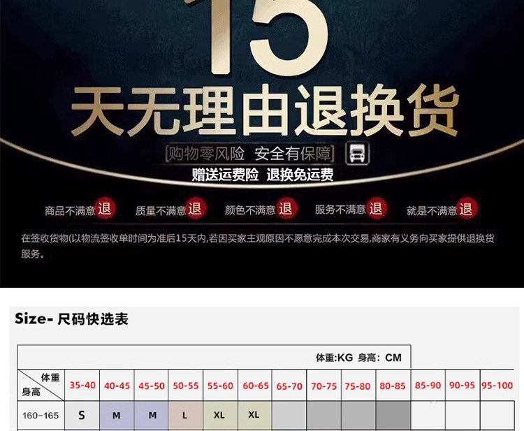 尺码 S-建议80斤以下,M-建议【80-95斤】,L-建议【95-110斤】,XL-建议【110-125斤】,2XL-建议【125-140斤】,3XL-建议【140-150斤】,4XL-建议【150-165斤】,5XL-建议【165-180斤】,6XL-建议【180-200斤】