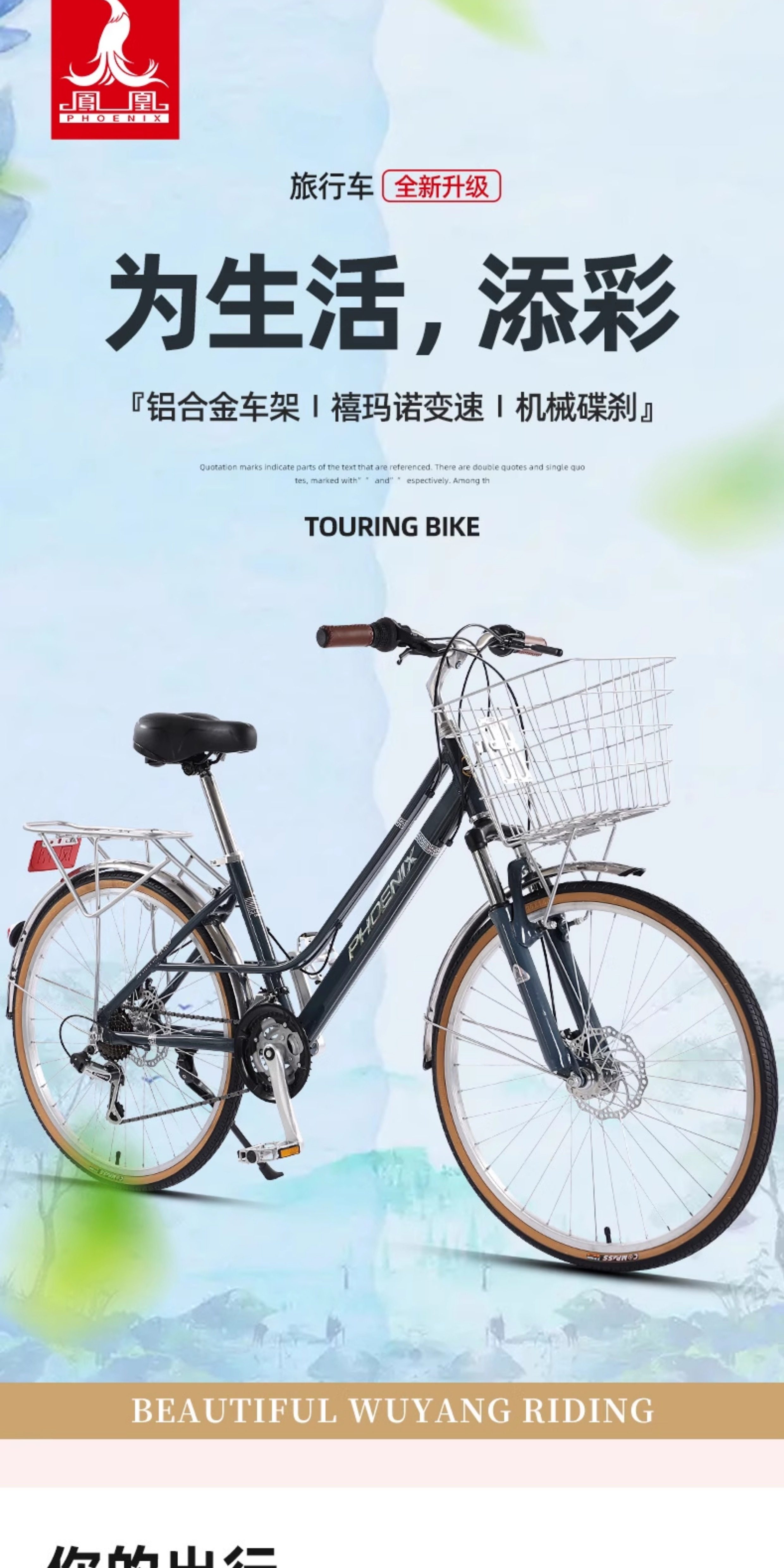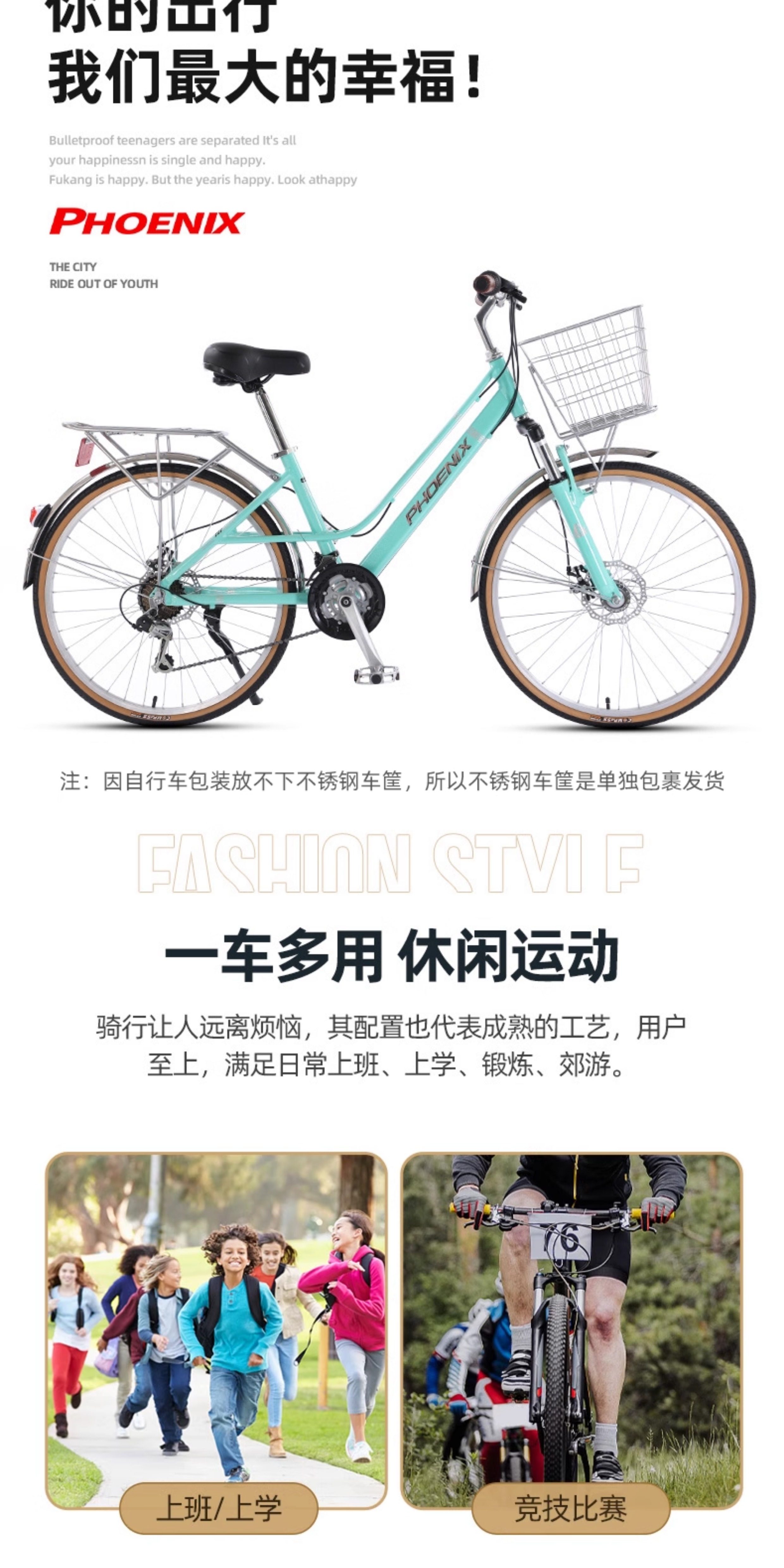 Phoenix Brand Travel Bicycle for Long-Distance Road Cycling, Shimano Gears, 26inch Gears, Unisex Commuting Bicycle
