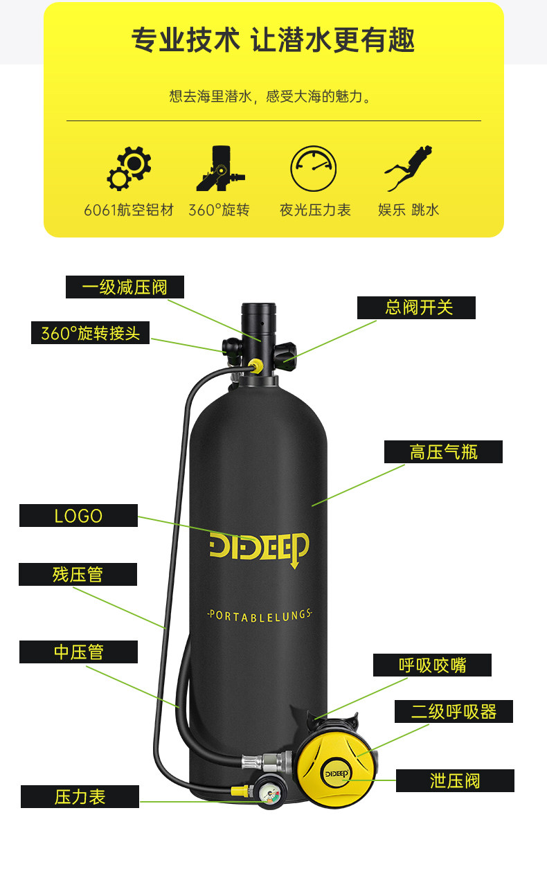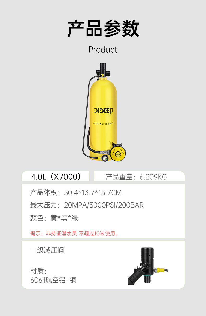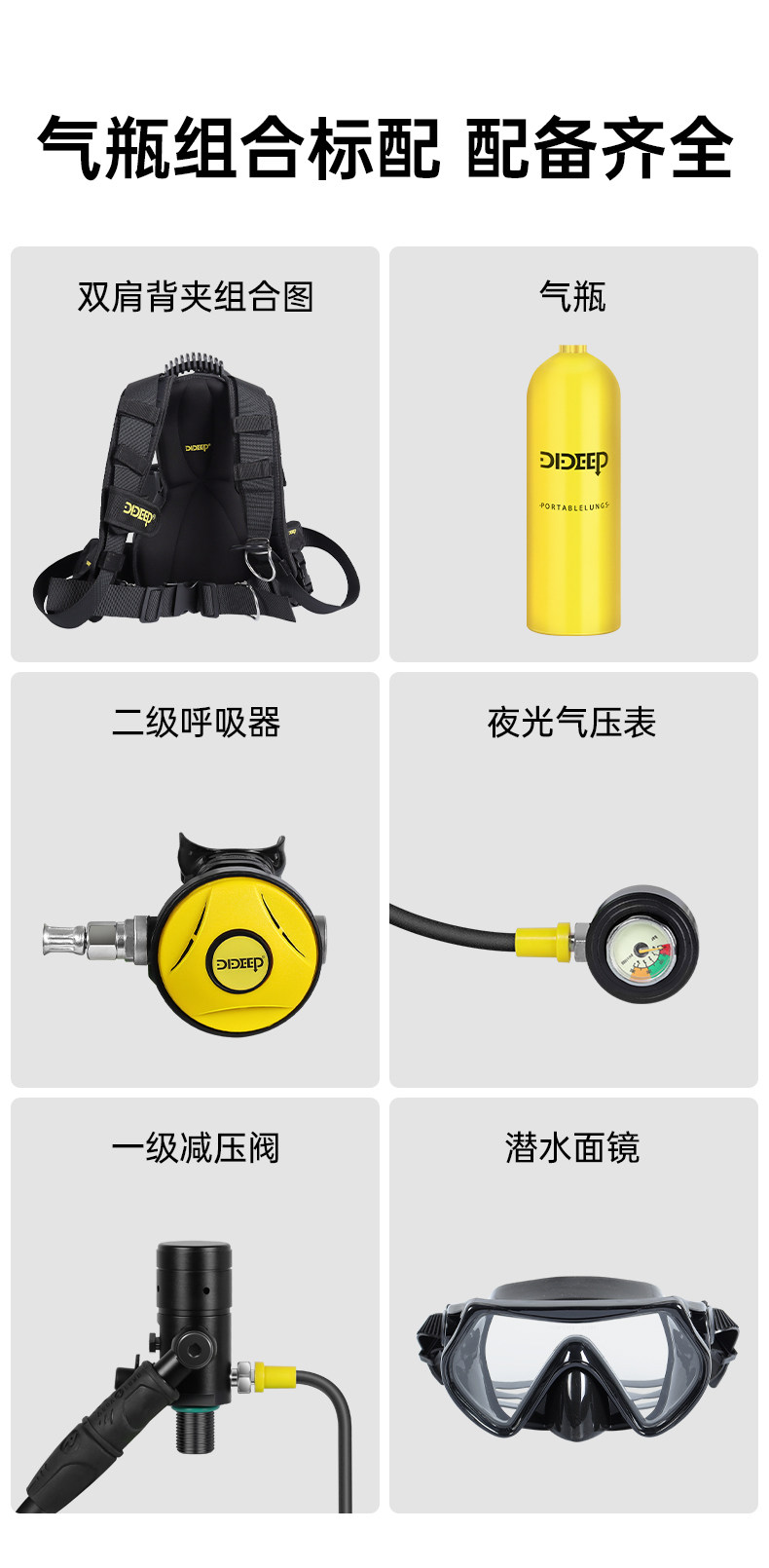 4L专业深潜水装备水下水肺呼吸器便携式氧气瓶罐咬嘴捕鱼神器全套
