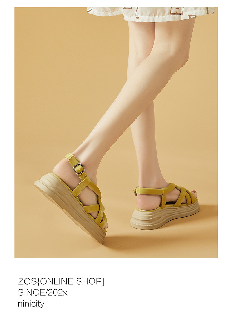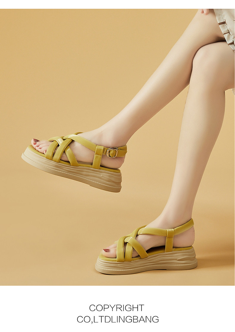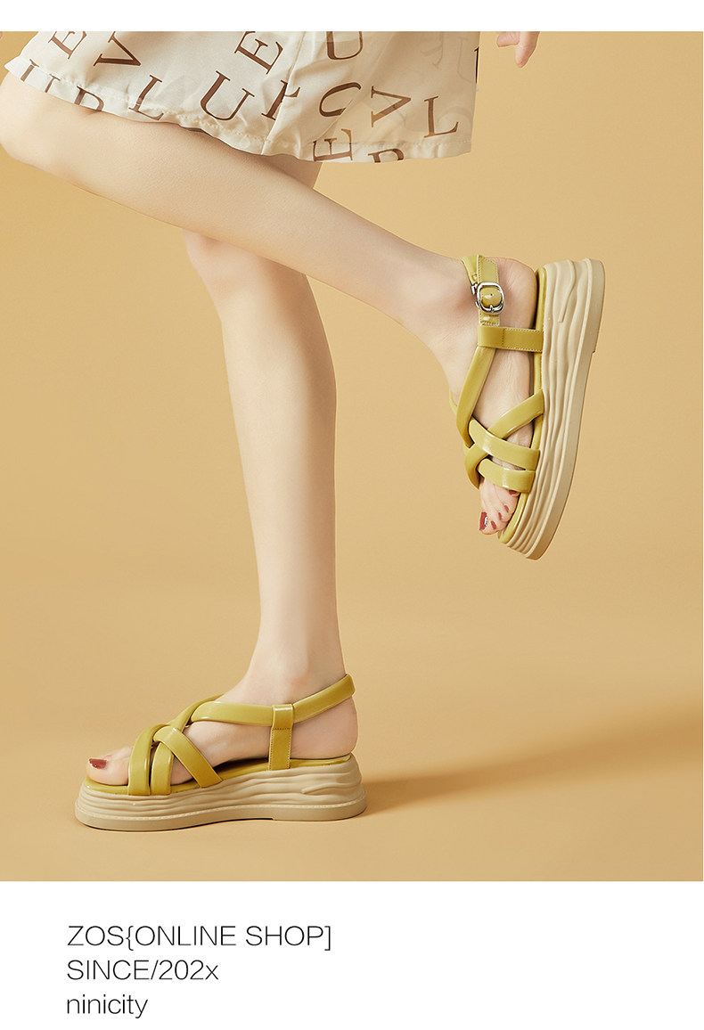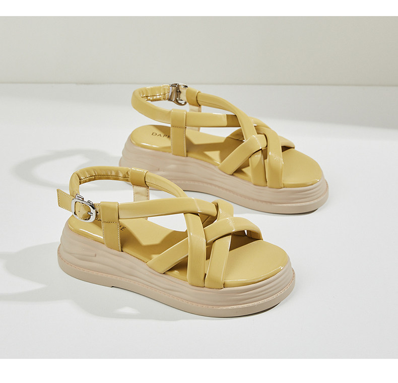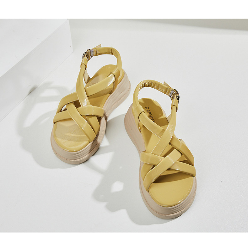 Daphne Plateau-Römersandalen mit dicken Sohlen für Damen im Herbst 2025, neue gelbe, rutschfeste, lässige Strandschuhe mit einem Riemen