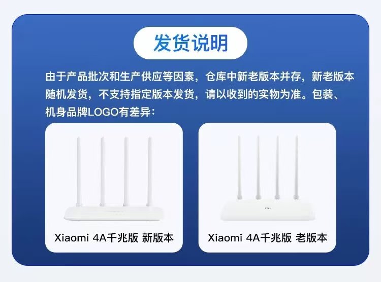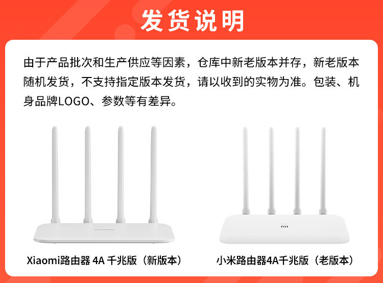Color Classification Xiaomi Router 4A Gigabit Edition [Standard Shipping],Xiaomi Router 4A Gigabit Edition [Sf Express],Xiaomi Router 4A Gigabit Edition + 1.0m Mbps Ethernet Cable,Xiaomi Router 4A Gigabit Edition + 2m Mbps Ethernet Cable,Xiaomi Router 4A Gigabit Edition + 3m Mbps Ethernet Cable,Xiaomi Router 4A Gigabit Edition + 5m Mbps Ethernet Cable,Xiaomi Router 4A Gigabit Edition + 10m Mbps Ethernet Cable,[Unpacking] 4A Gigabit Version [Unpacking and Using Without Packaging Instructions],Xiaomi Router 4C [Used Second-Hand after Unpacking]