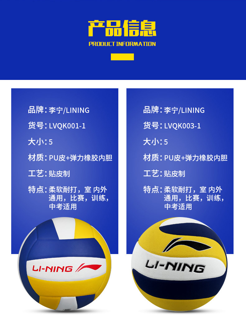 Examen d'entrée au lycée de Li Ning Volley-ball n° 5 Examen physique spécial Volley-ball souple et dur pour les élèves du primaire et du secondaire N° 5 Entraînement, compétition, sports de plein air