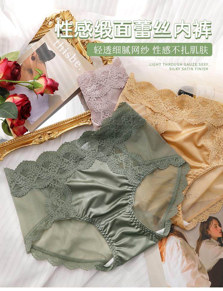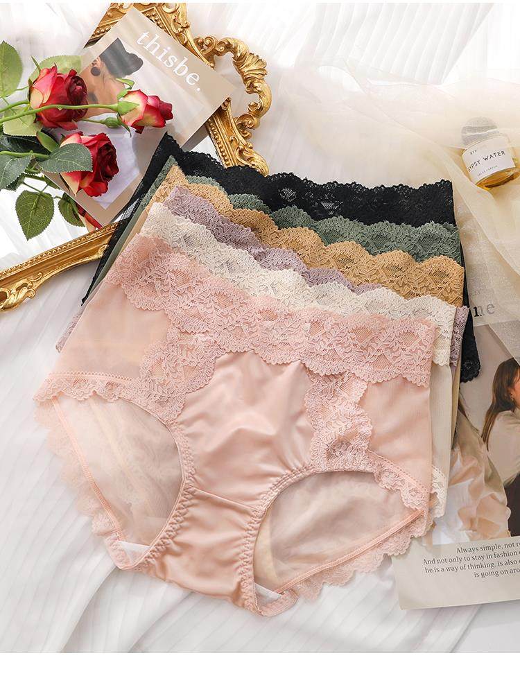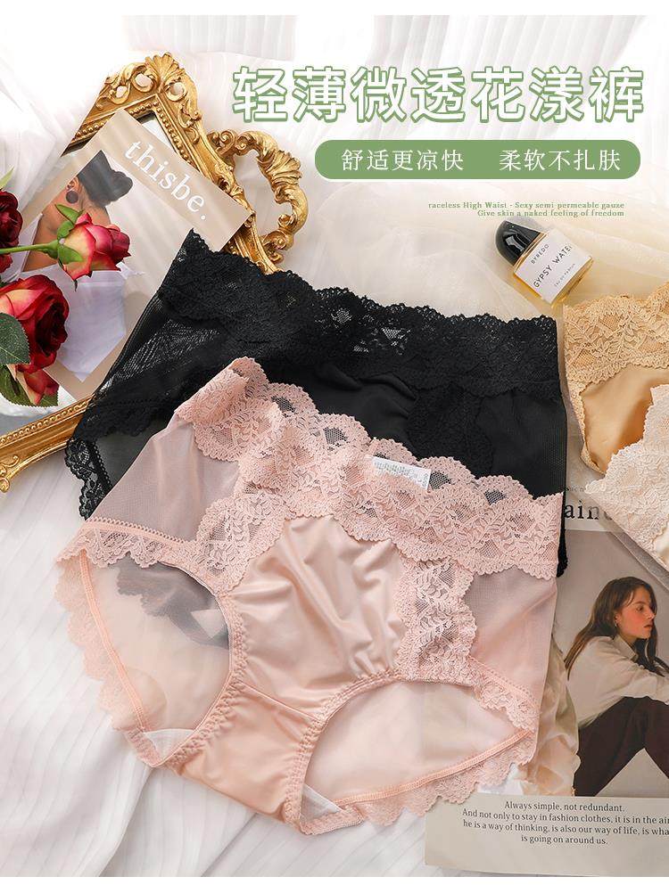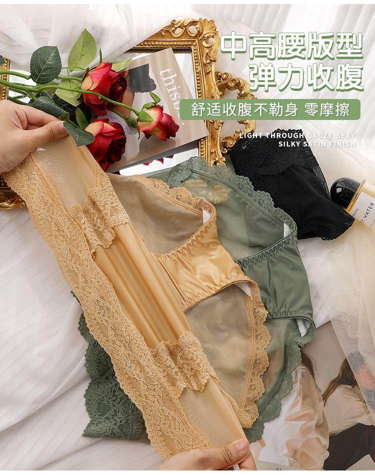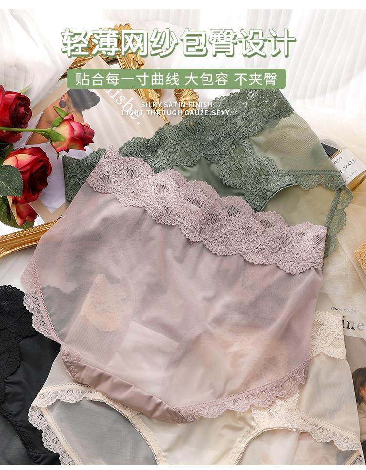 蕾丝内裤女士性感收腹提臀中高腰纯欲冰丝短裤薄款透气网纱三角裤