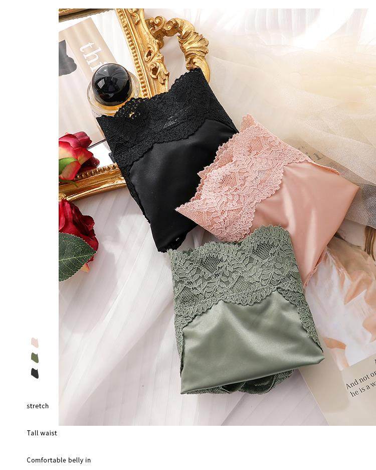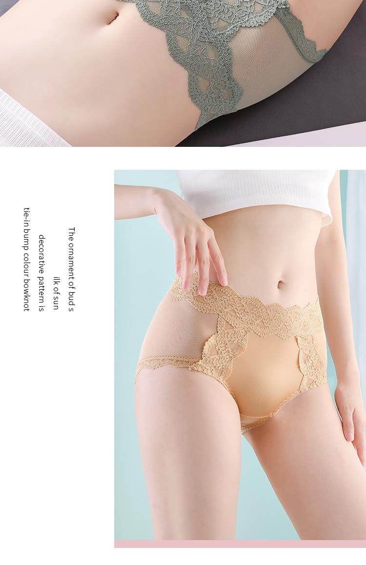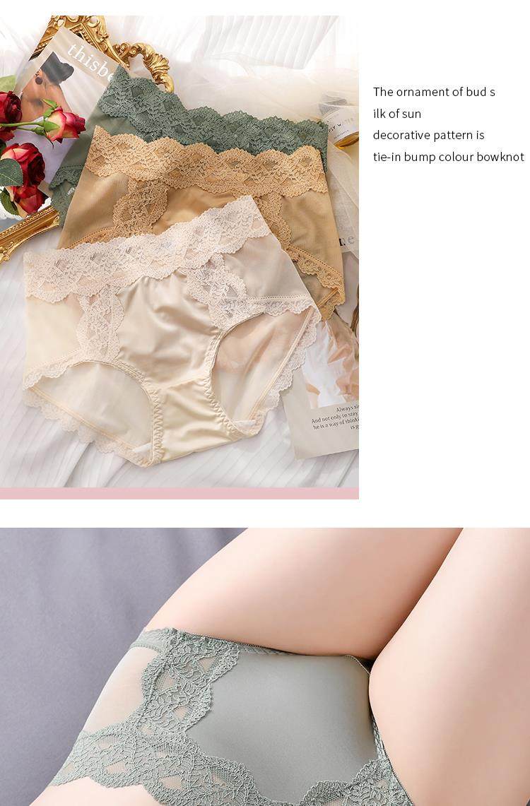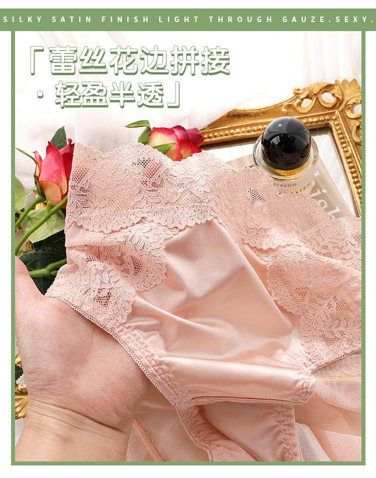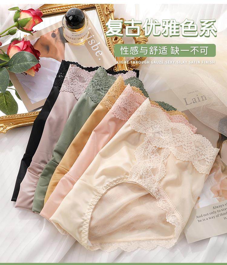 蕾丝内裤女士性感收腹提臀中高腰纯欲冰丝短裤薄款透气网纱三角裤