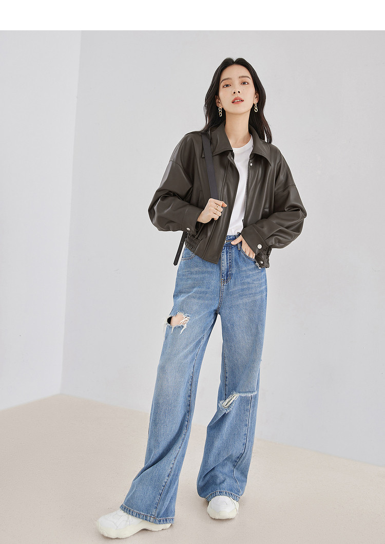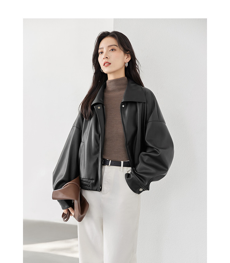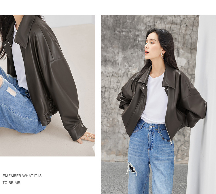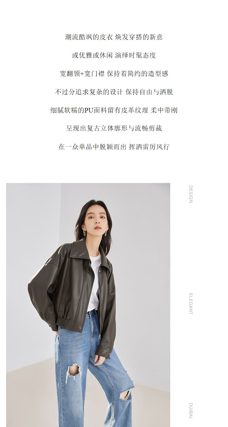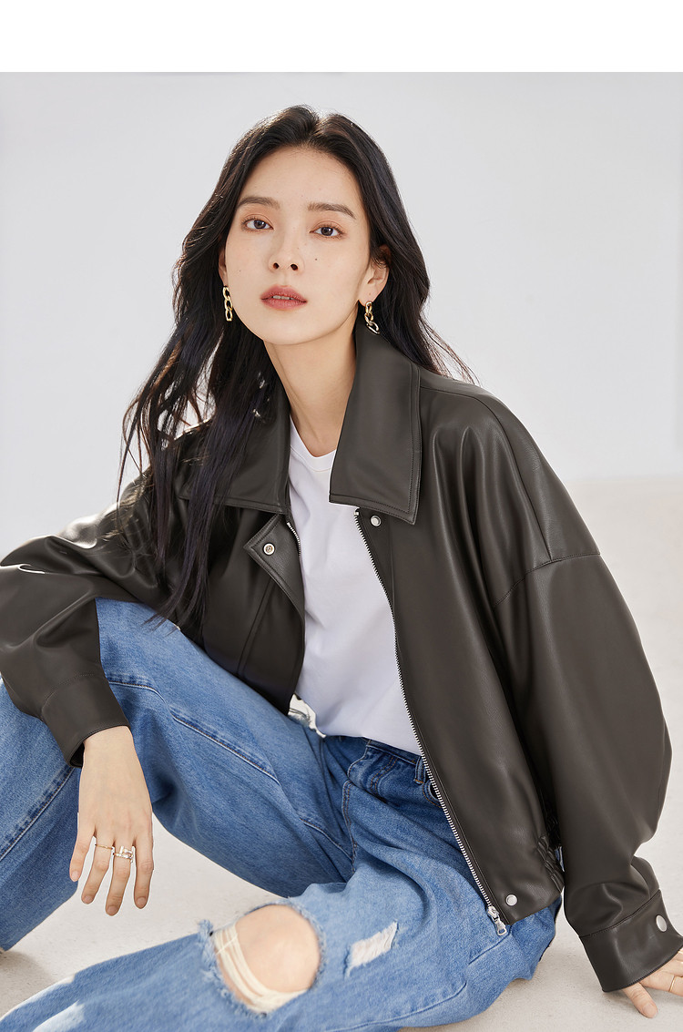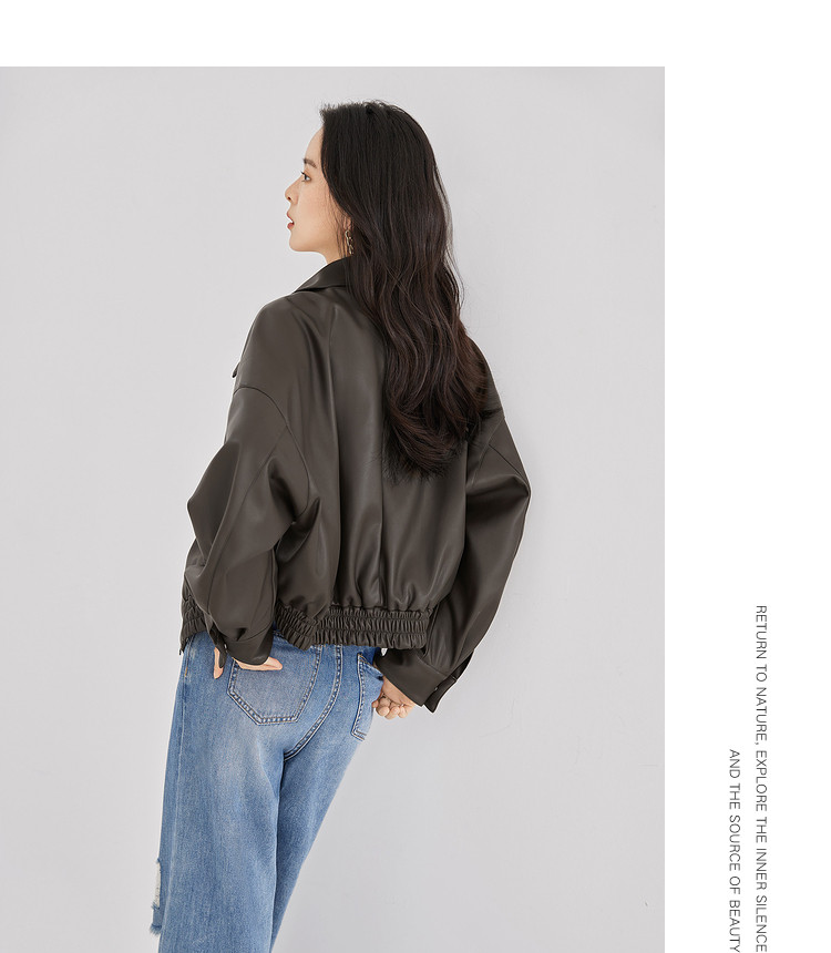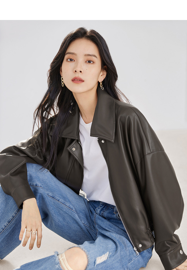 Dialogue retro brown leather jacket women's 2026 spring new loose motorcycle casual Yadan style short leather jacket