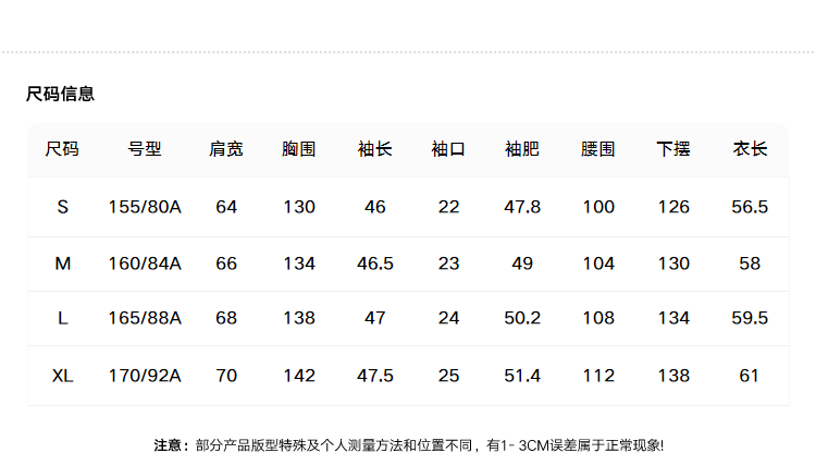 China (cm) 160-165/84-86 165-170 / 88-90 167-172 / 92-96 168-173 / 98-102 170-176 / 106-110