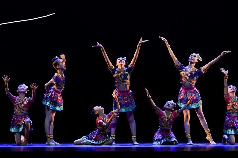 The 12Th Xiaohuo Style Dance Costume for Children, Miao and Dong Ethnic Minority Performance Clothing