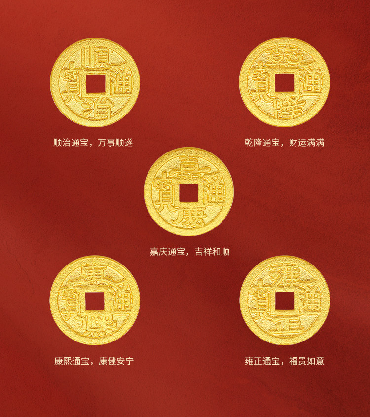 规格 顺治通宝,康熙通宝,雍正通宝,乾隆通宝,嘉庆通宝