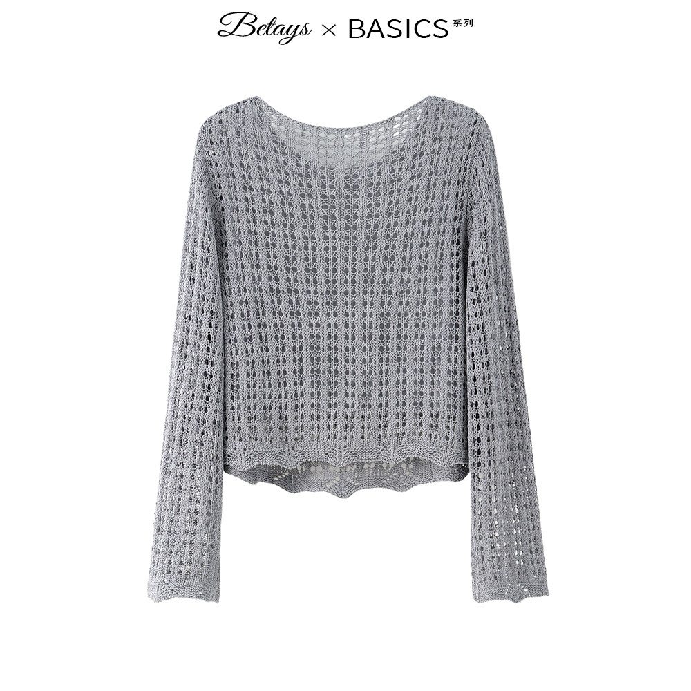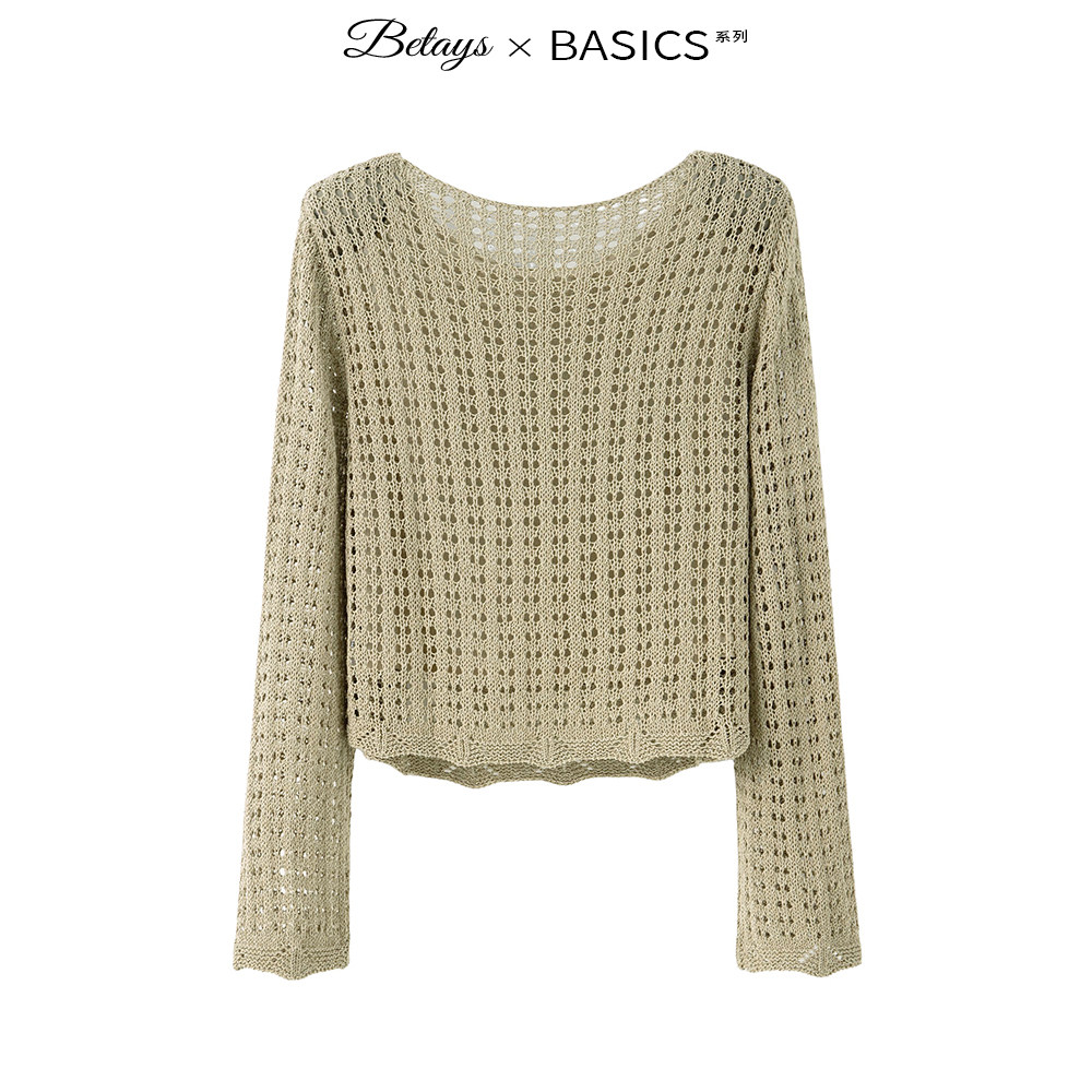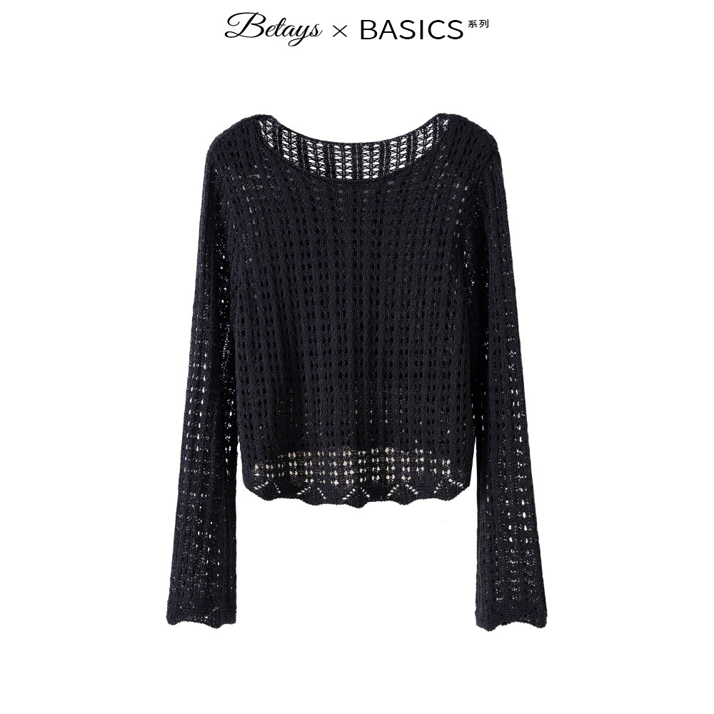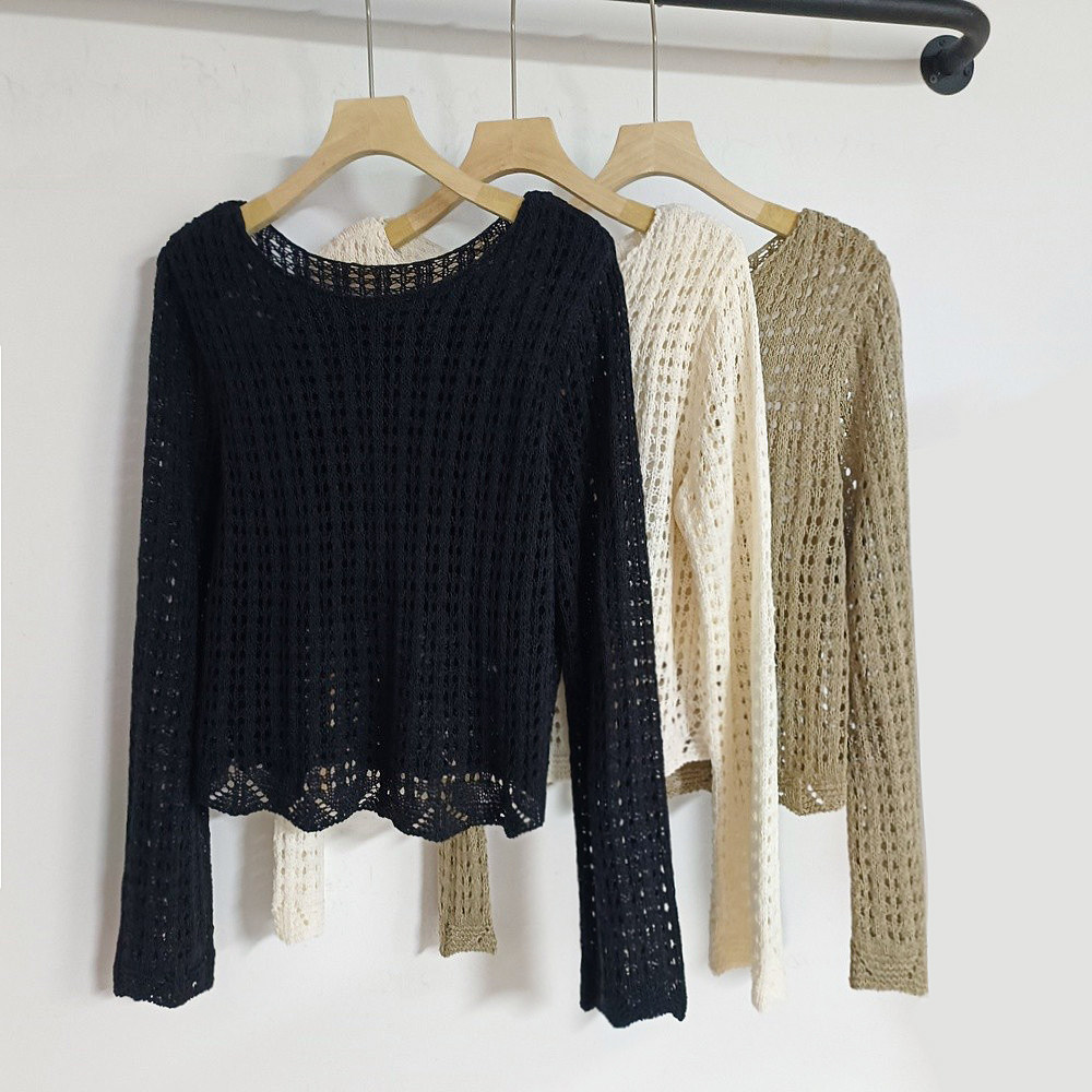 Counter echte gestrickte Hohlbluse für Damen 2025 Frühling und Sommer langärmeliges schwarzes Mesh-Sonnenschutz-High-End-Kurzoberteil