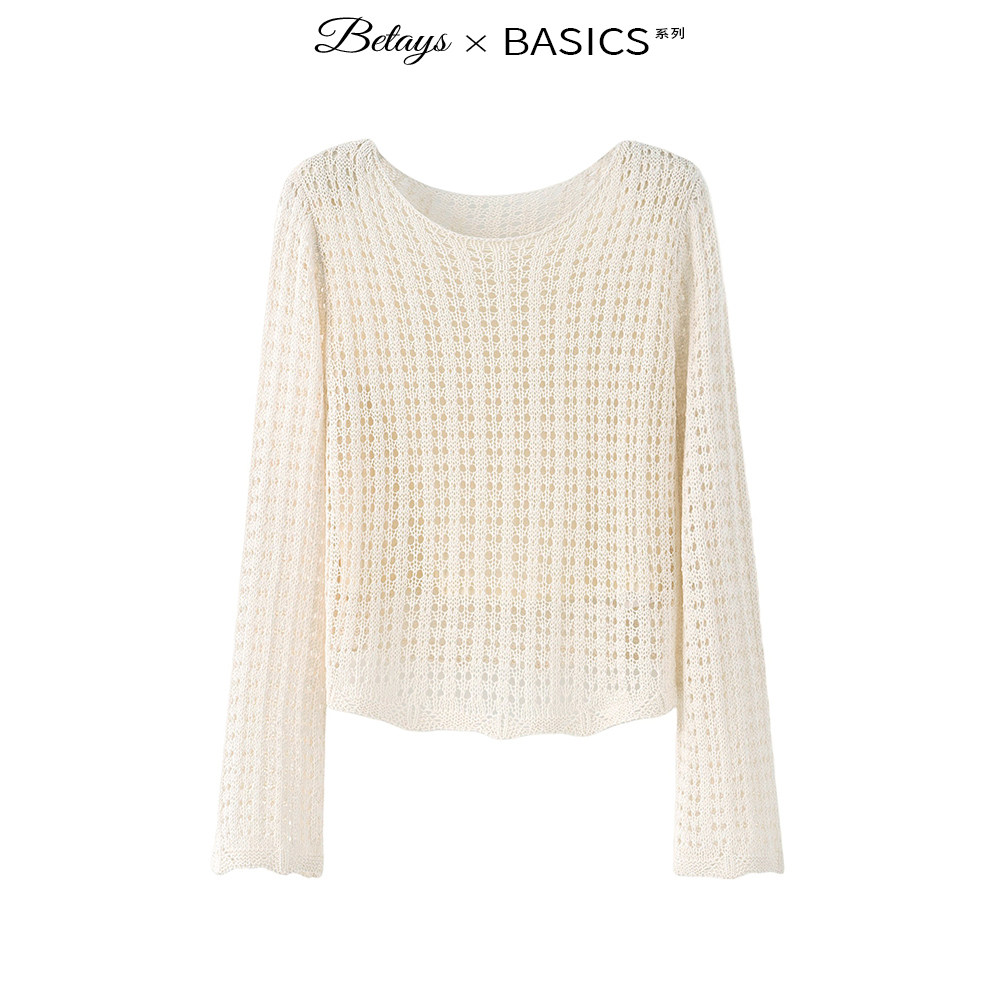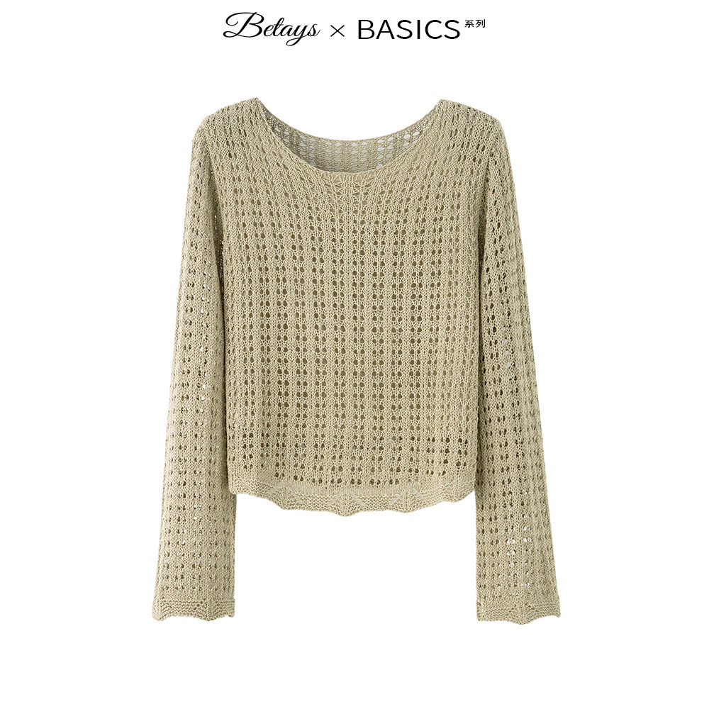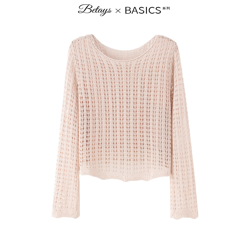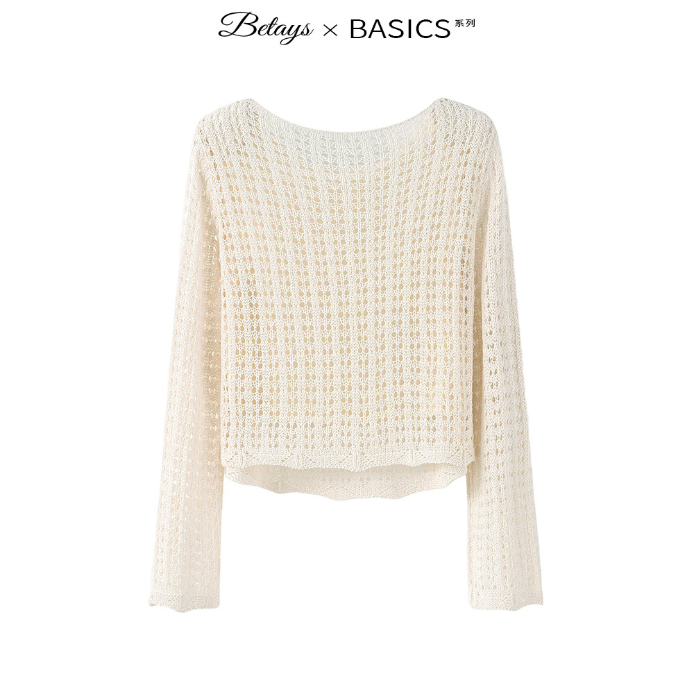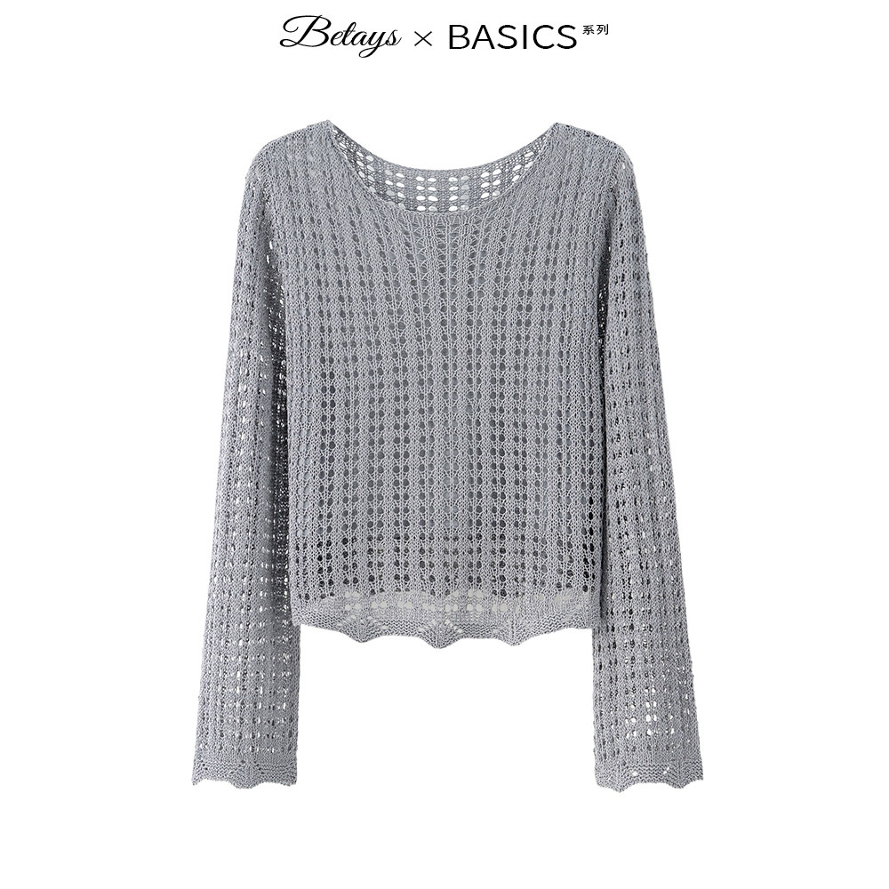 Counter echte gestrickte Hohlbluse für Damen 2025 Frühling und Sommer langärmeliges schwarzes Mesh-Sonnenschutz-High-End-Kurzoberteil