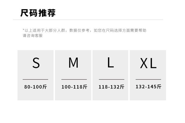 China (cm) 165 / 88-90 170 / 96-98 175 / 108-110 180 / 118-122 185 / 126-130