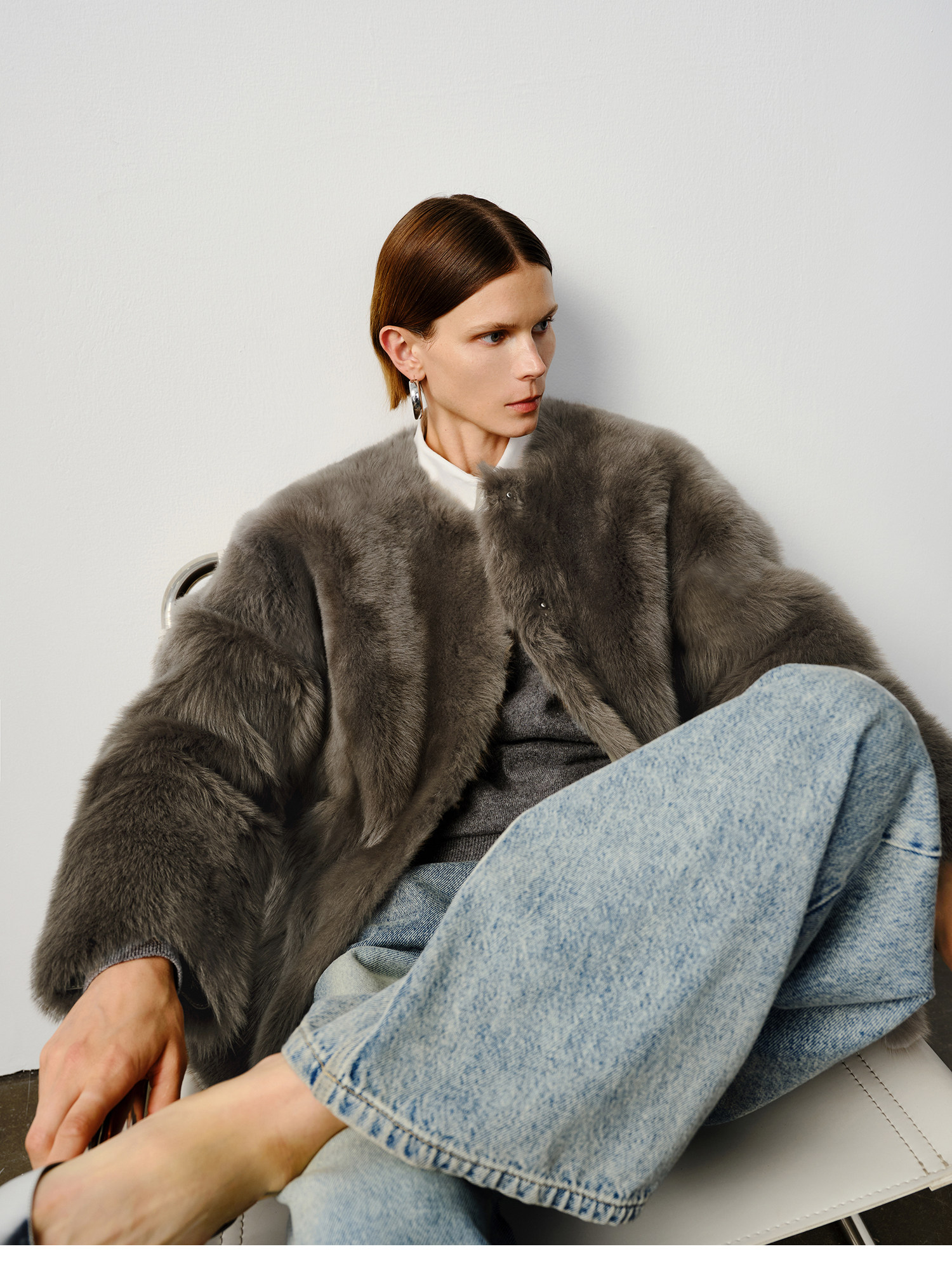 MSBEAST importierte toskanisches gerades Pelz-All-in-One-Damen-Lammfell | Bairi Schumann
