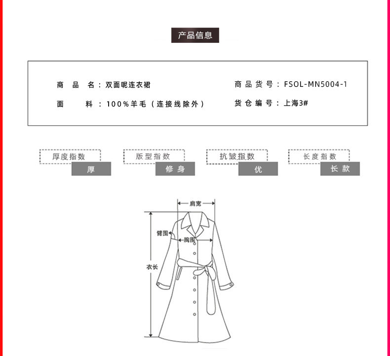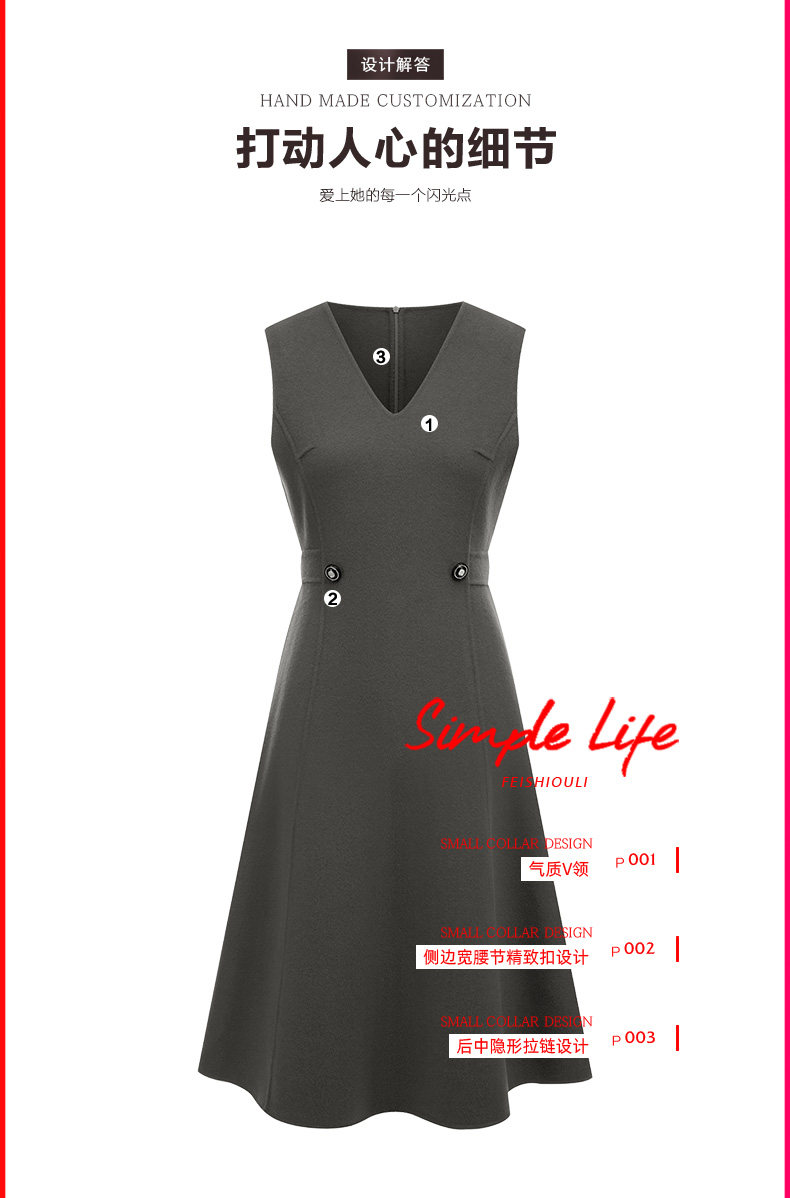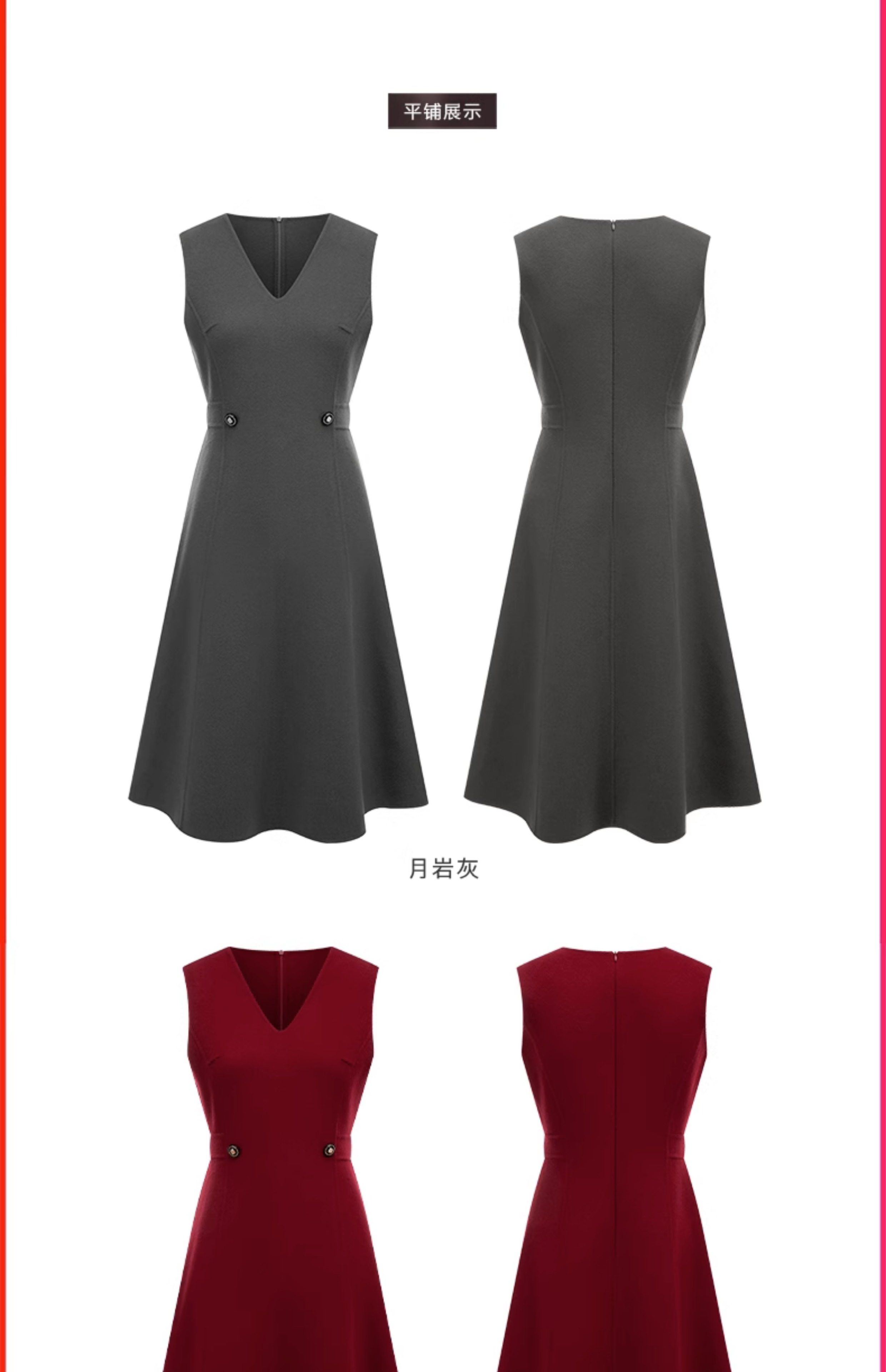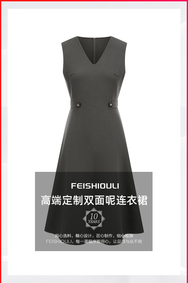 羊毛背心连衣裙秋冬新款气质流行简约修身V领双面呢A字长裙子显瘦