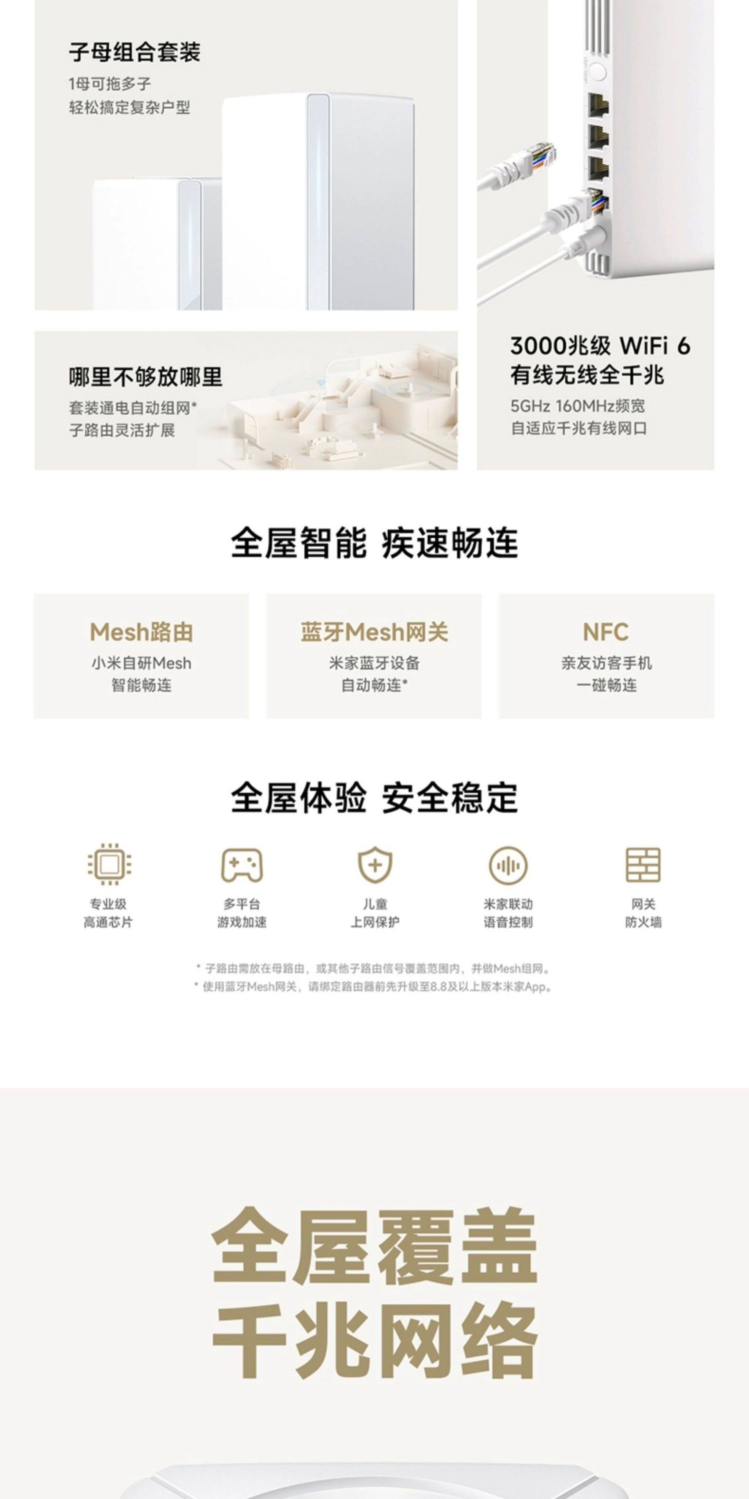 Color Classification Xiaomi Whole House Router (1 Mother and 1 Child) + Yto,Xiaomi Whole House Router (1 Mother and 1 Child) + Sf Express,Whole House Wi-Fi Router (1 Mother, 1 Child) + 2m Mbps Ethernet Cable + Yuantong Express,Whole House Wi-Fi Router (1 Mother, 1 Child) + 2m Gigabit Ethernet Cable + Sf Express Shipping,Whole House Wi-Fi Router (1 Mother, 1 Child) + 5m Mbps Ethernet Cable + Yuantong Express,Whole House Wi-Fi Router (1 Mother, 1 Child) + 5m Mbps Ethernet Cable + Sf Express Shipping,Whole House Wi-Fi Router (1 Mother, 1 Child) + 10m Mbps Ethernet Cable + Yuantong Express,Whole House Wi-Fi Router (1 Mother, 1 Child) + 10m Gigabit Ethernet Cable + Sf Express Shipping,Xiaomi Whole House Router Sub-Router + Yto,Xiaomi Whole House Router Sub-Router + Sf Express,Whole House Router Sub-Router + 2m Megabit Network Cable + Yto,Whole House Router Sub-Router + 2m Megabit Network Cable + Sf Express,Whole House Router Sub-Router + 5m Megabit Network Cable + Yto,Whole House Router Sub-Router + 5m Megabit Network Cable + Sf Express,Whole House Router Sub-Router + 10m Megabit Network Cable + Yto,Whole House Router Sub-Router + 10m Megabit Network Cable + Sf Express