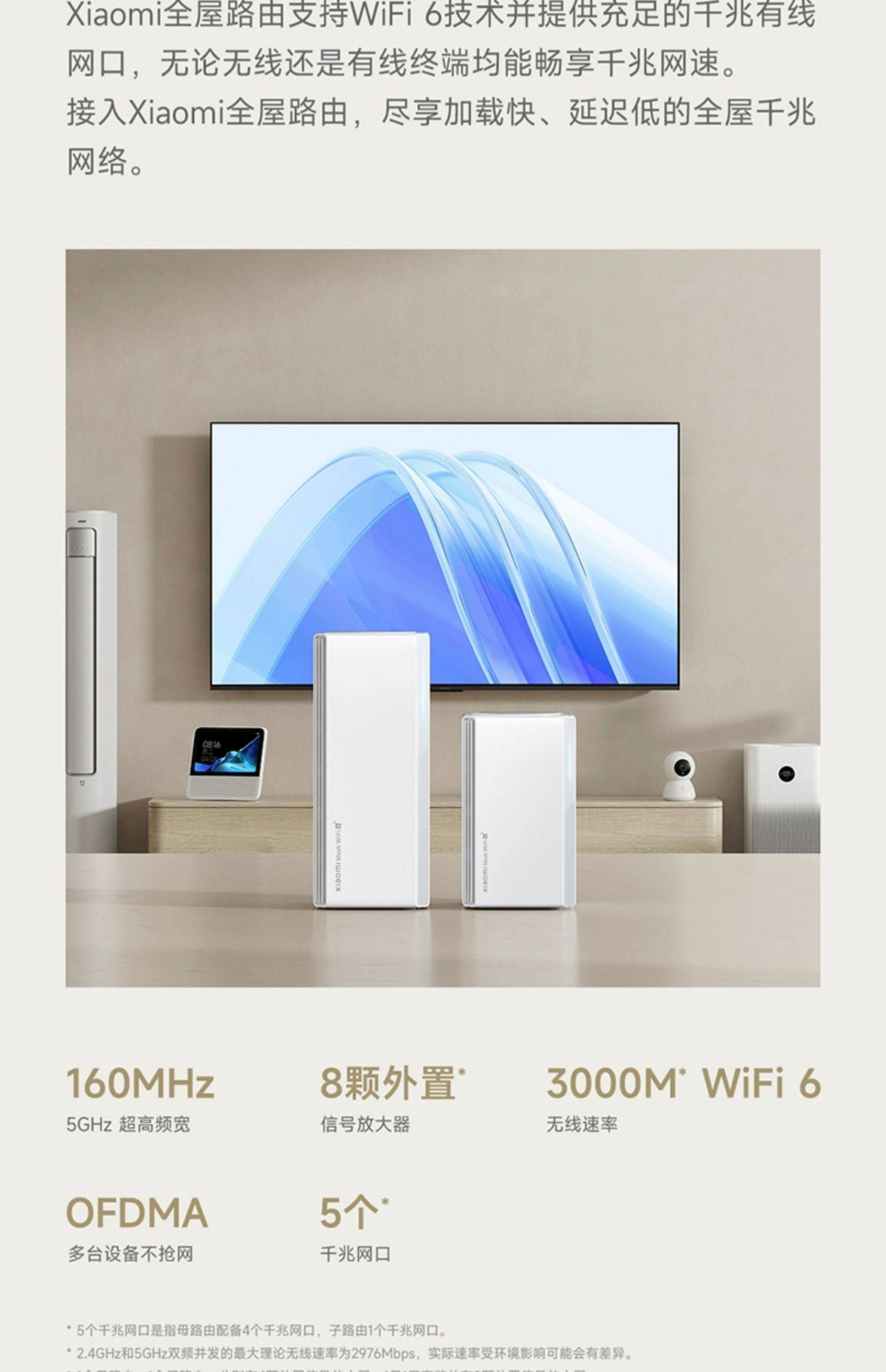 Xiaomi Whole House Router Parent-Child Router Set Wifi 6 Home Wireless Gigabit High-Speed 5g Port for Large Households