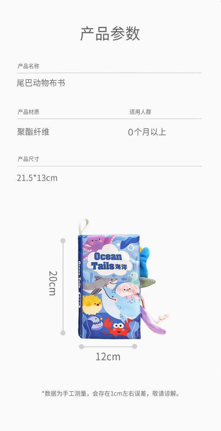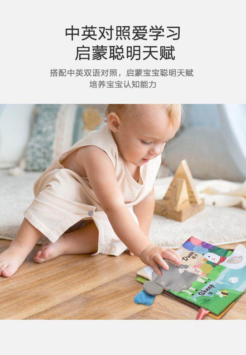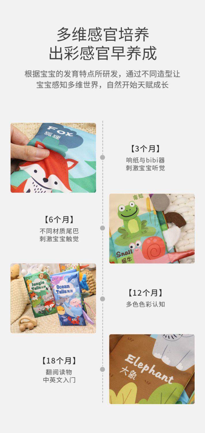 婴儿布书宝宝早教撕不烂可咬立体尾巴手撕书0-6个月玩具新年礼物