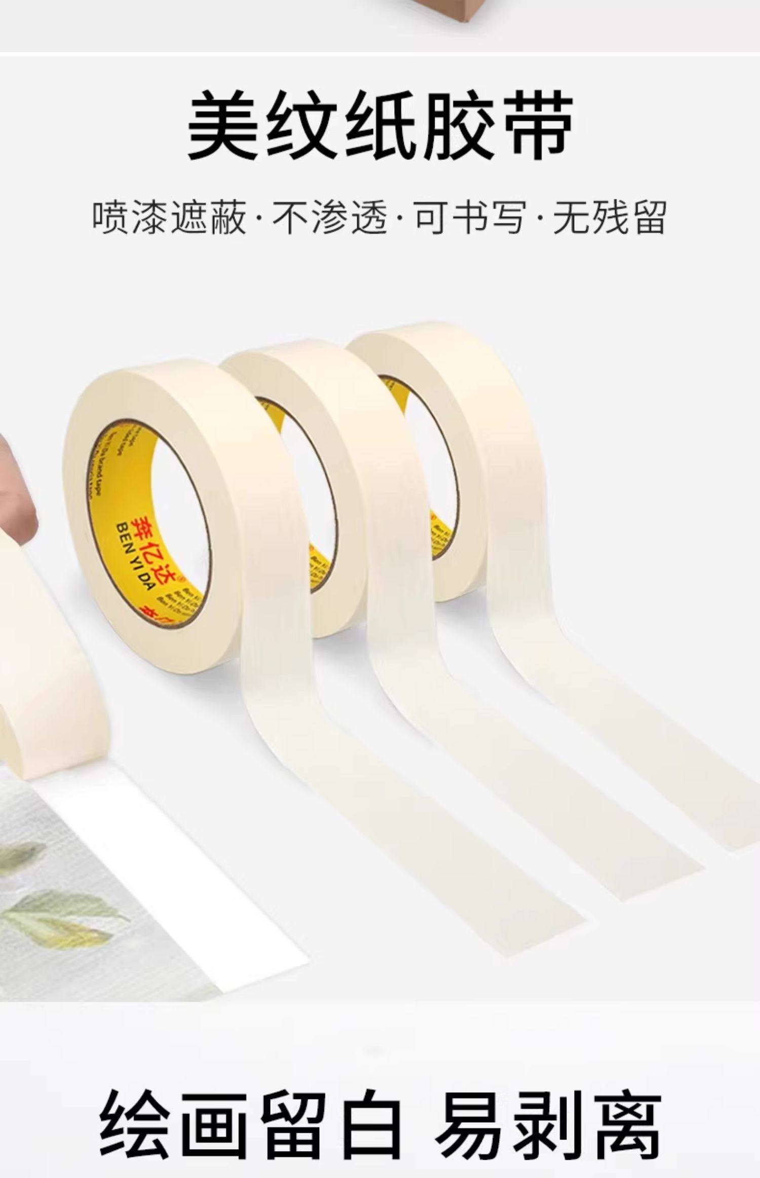美纹纸胶带整箱批发墙面无痕喷漆遮蔽手撕外墙真石漆贴边美缝粘贴强粘可书写不残留50米美术生美文美纹胶带