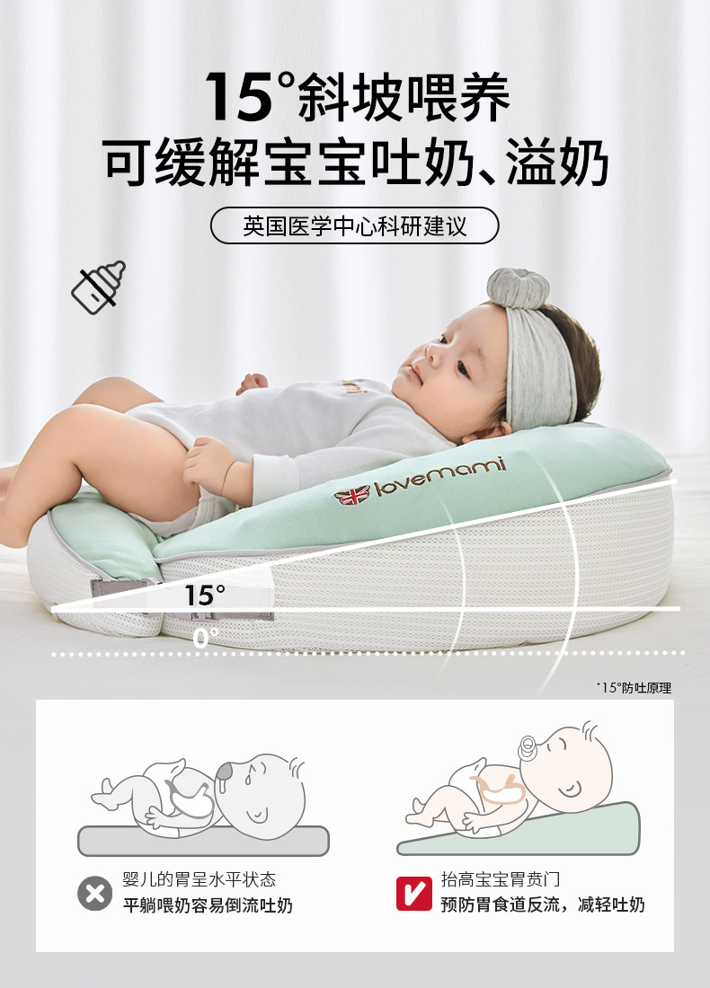 英国lovemami婴儿防吐奶斜坡垫哺乳枕头斜坡枕宝宝喂奶神器慢回弹