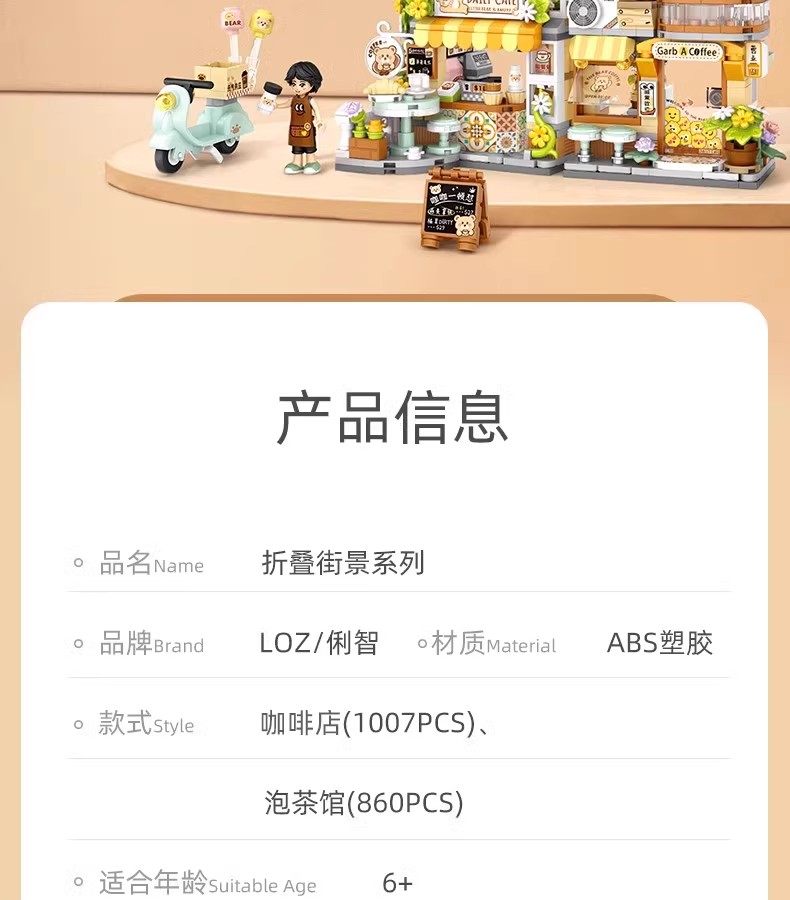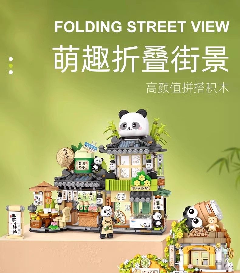 Loz/Smart Chinese-Style Folding Street Scene Building Blocks Little Bear Coffee Shop Assembled Panda Tea House Girls' Birthday Gift