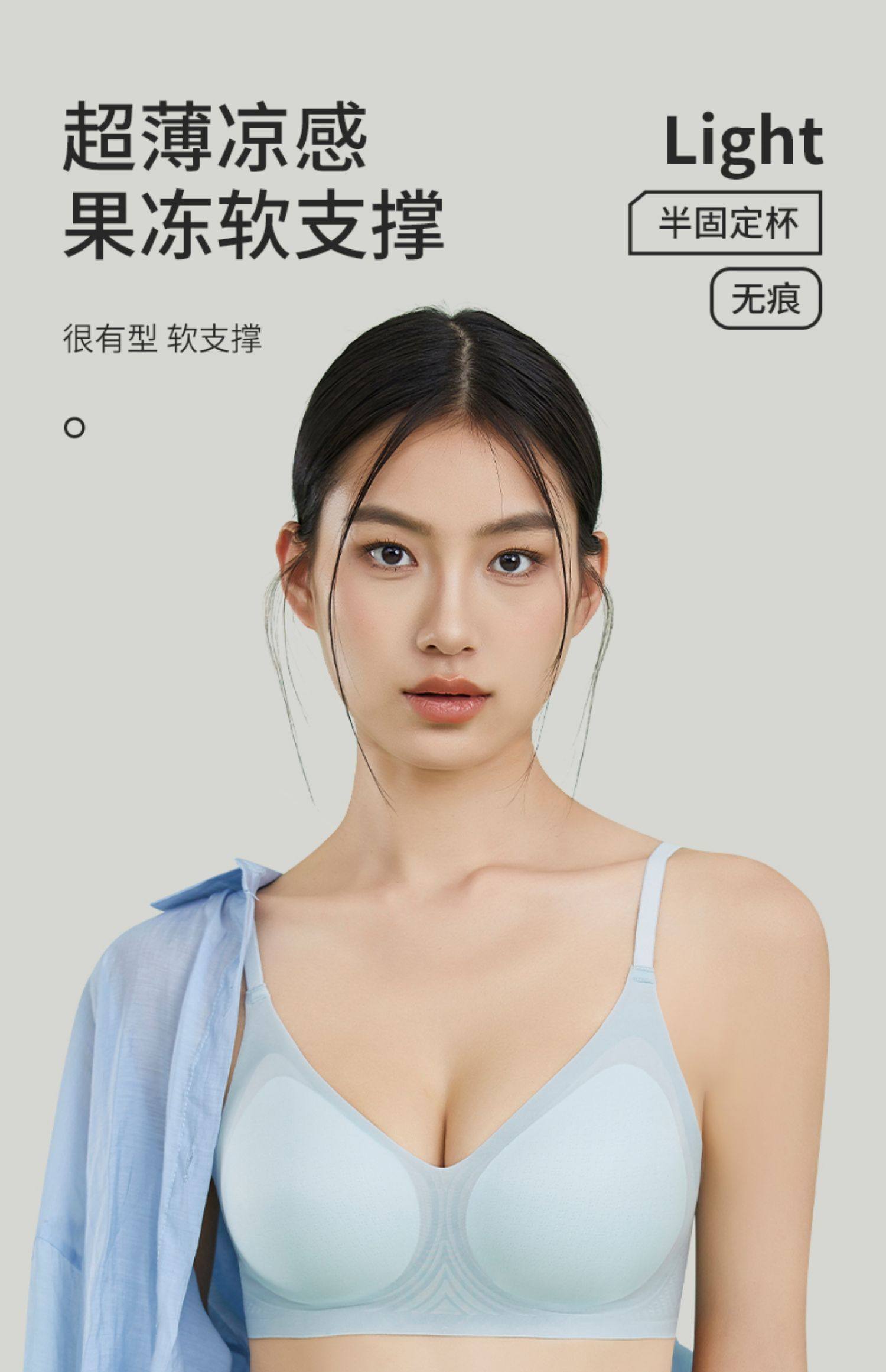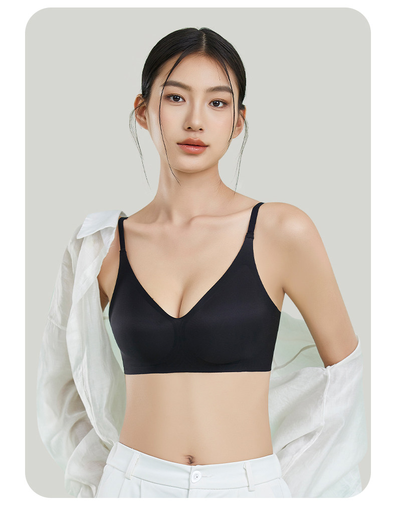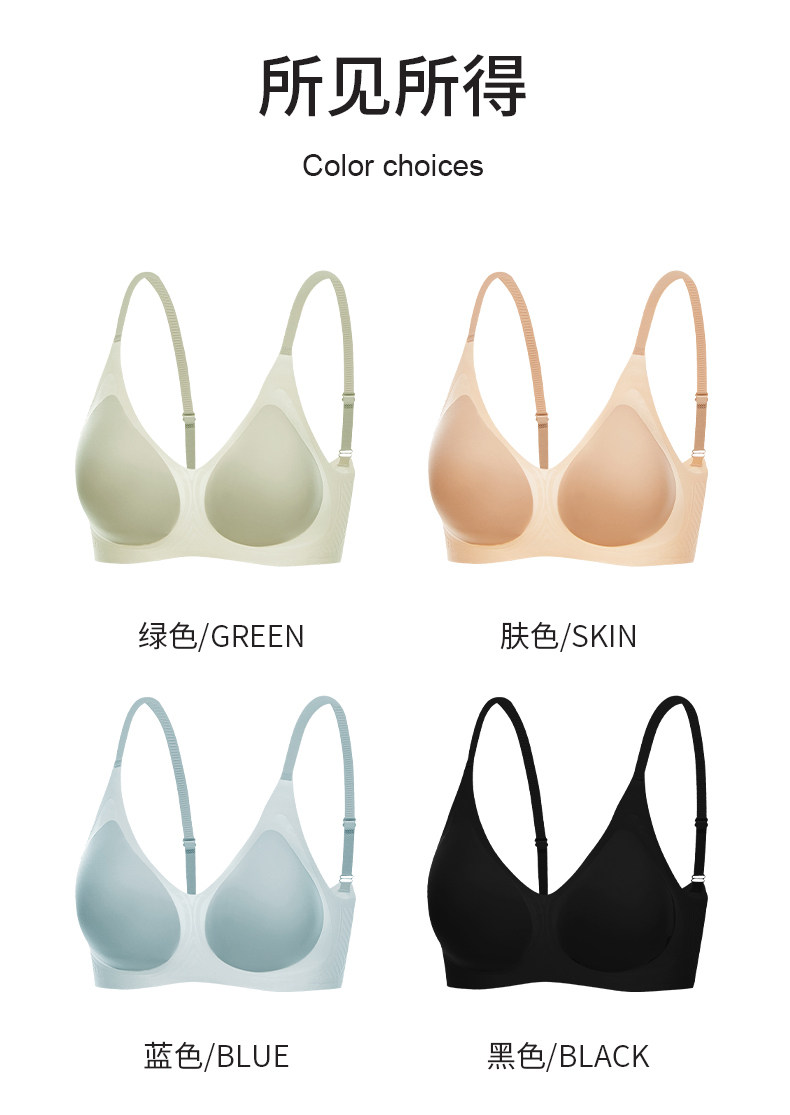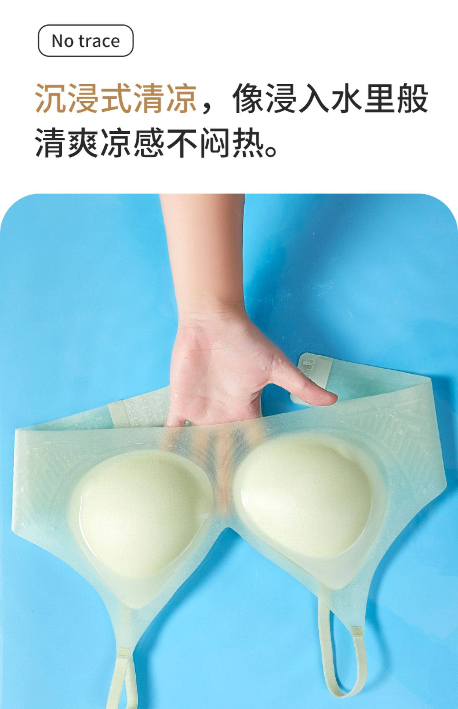 Jelly Support Back-Hermosa ropa interior para mujer, verano, ultrafino, sin costuras, pechos grandes que muestran pechos pequeños, sujetador estilo chaleco push-up