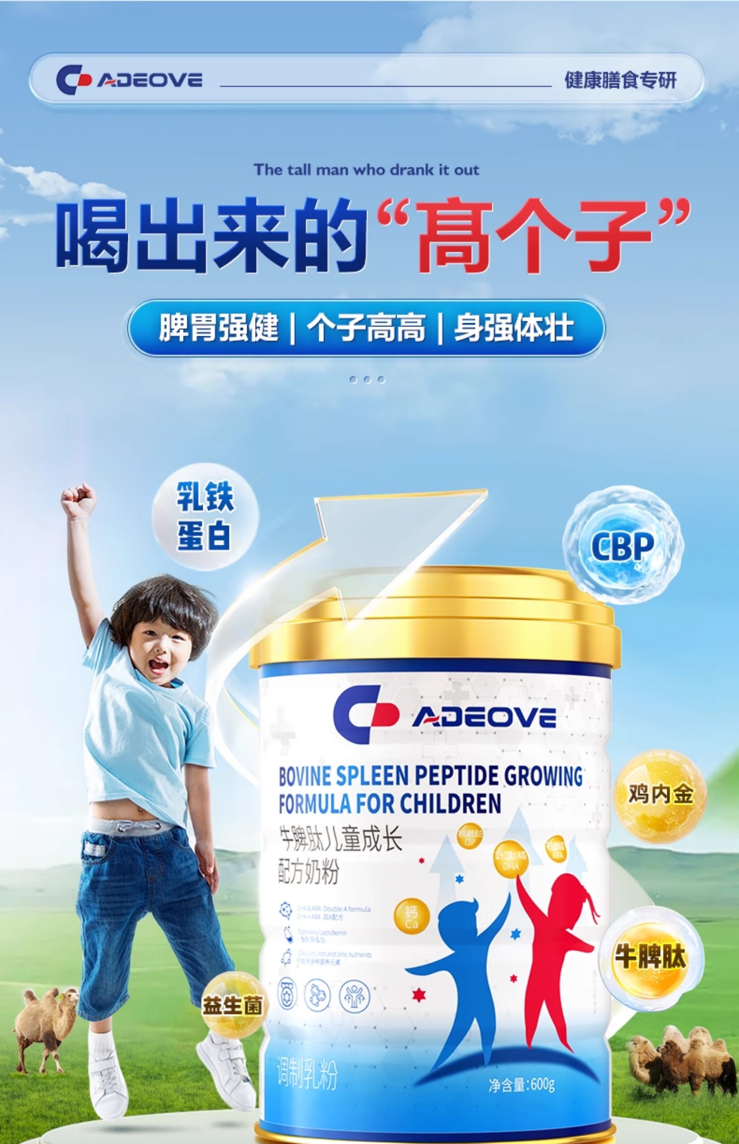Children and Adolescents' Spleen Peptide and Chicken Gizzard Formula Milk Powder Regulates the Spleen and Stomach, Is High in Calcium, and Helps with Height Growth for Students