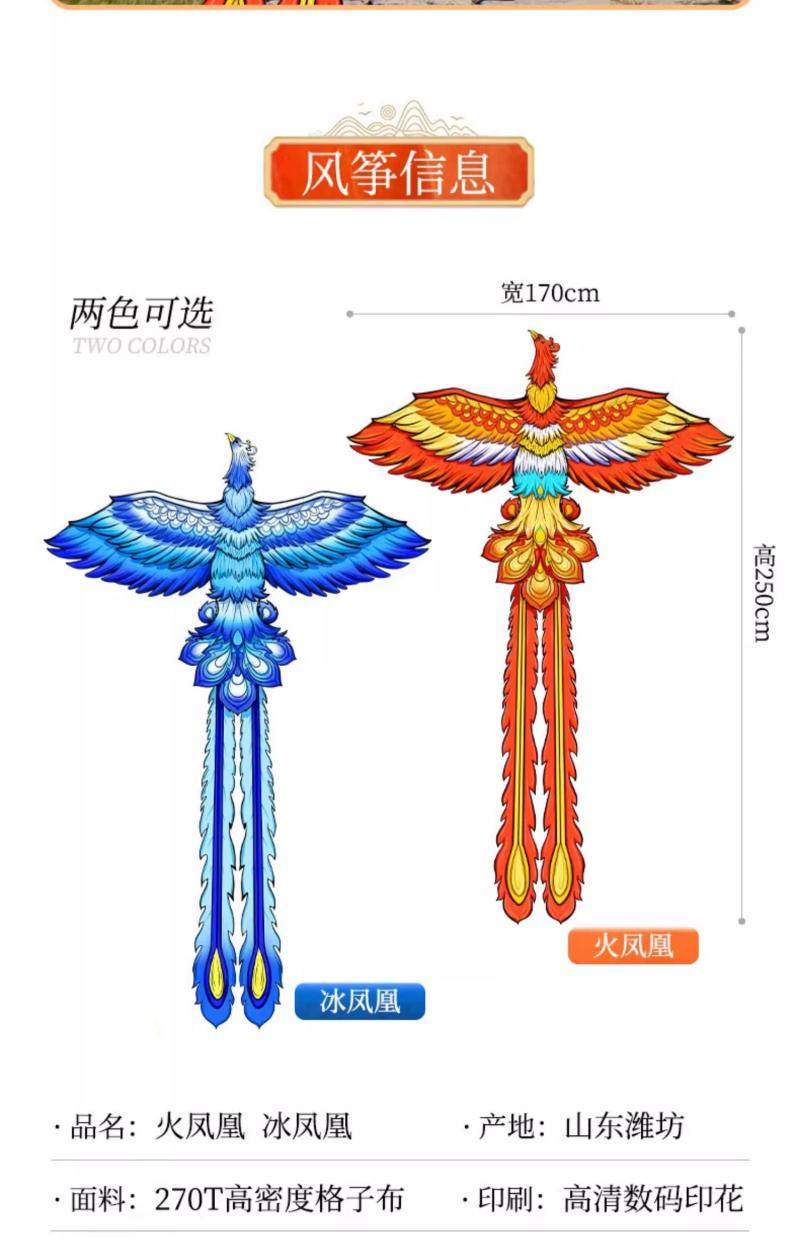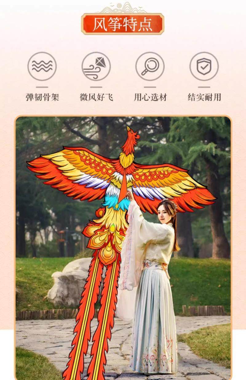 Phoenix Kite 2024 New Model Shandong Weifang Internet-Famous High-End National Trend Large Kite for Adults Easy to Fly in Light Breeze