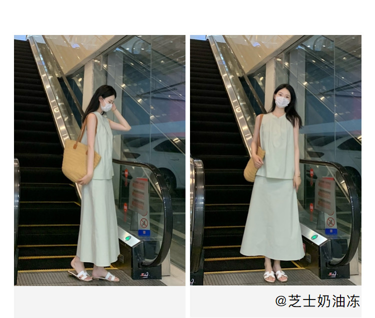 Dialogue Hot Style Back Hollow Shirt Suit Skirt Women 2025 Summer New Sleeveless Top Skirt Two-piece Set