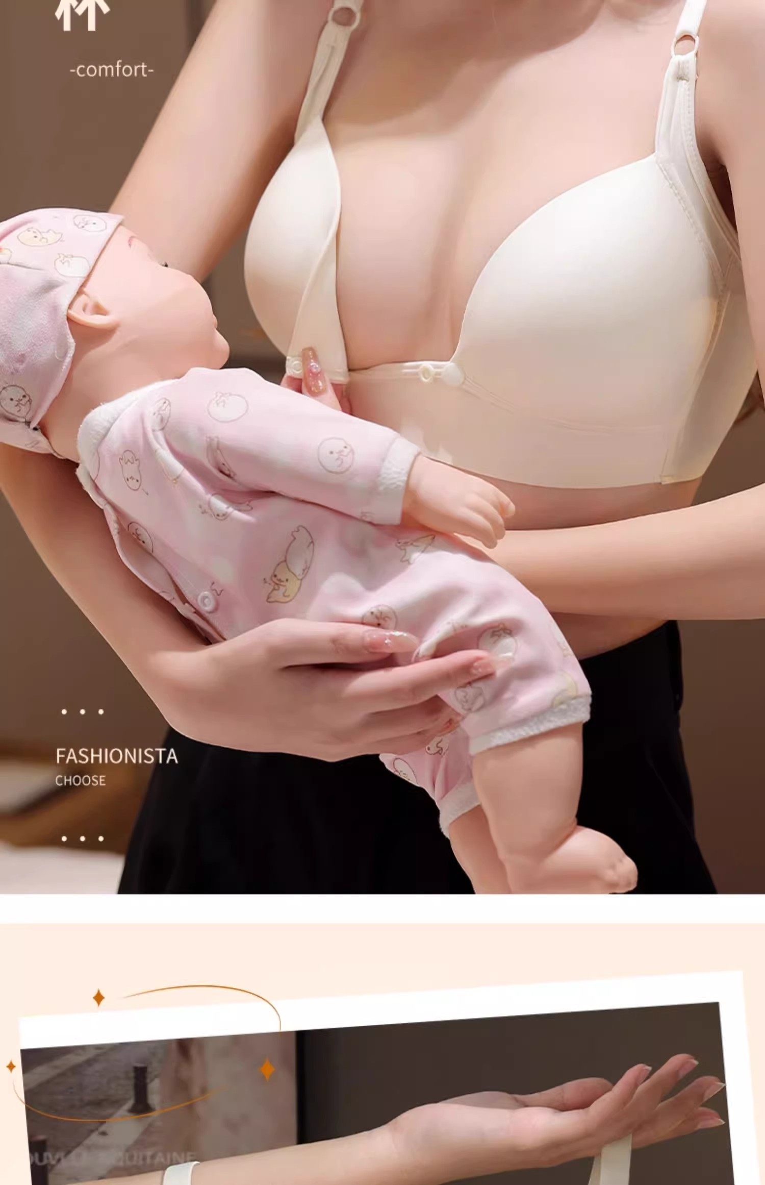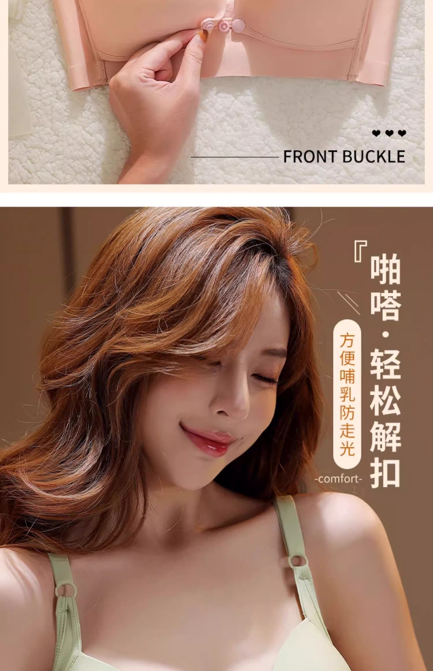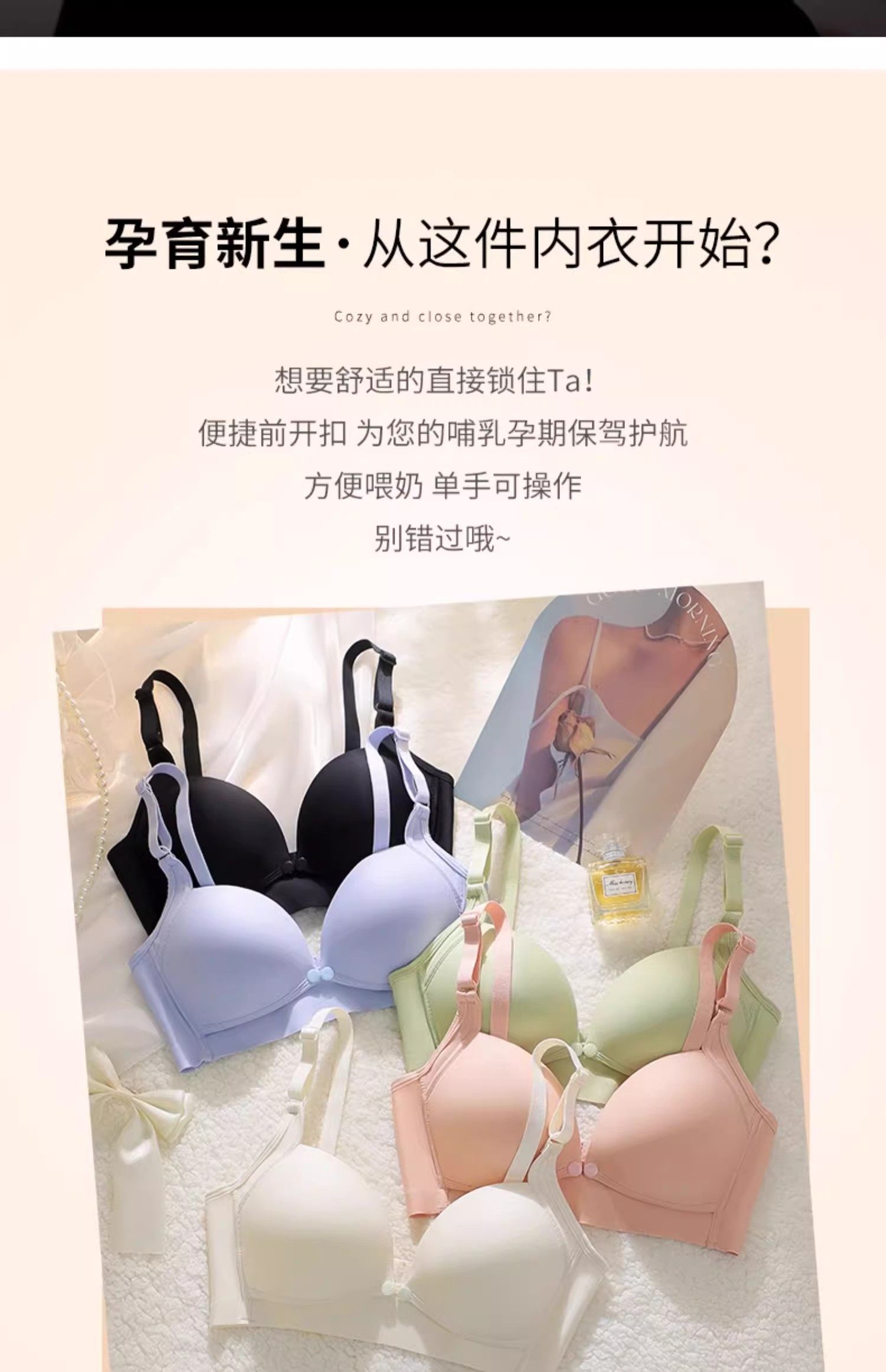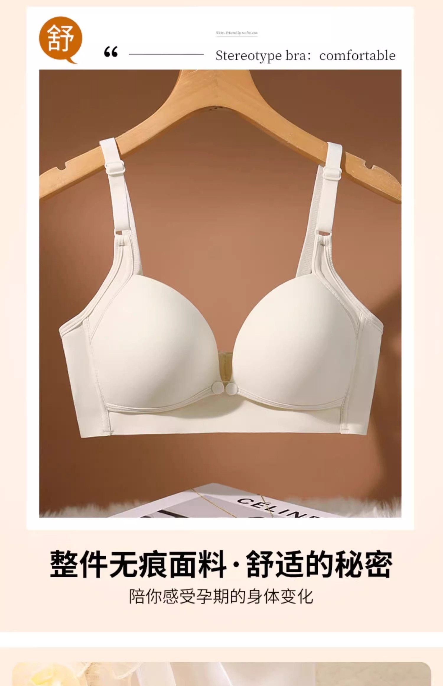 Nursing Bra with Fixed Cups, Push-Up, Anti-Sagging, Postpartum Breastfeeding Bra, Front Buckle, Maternity Bra, Thin Style