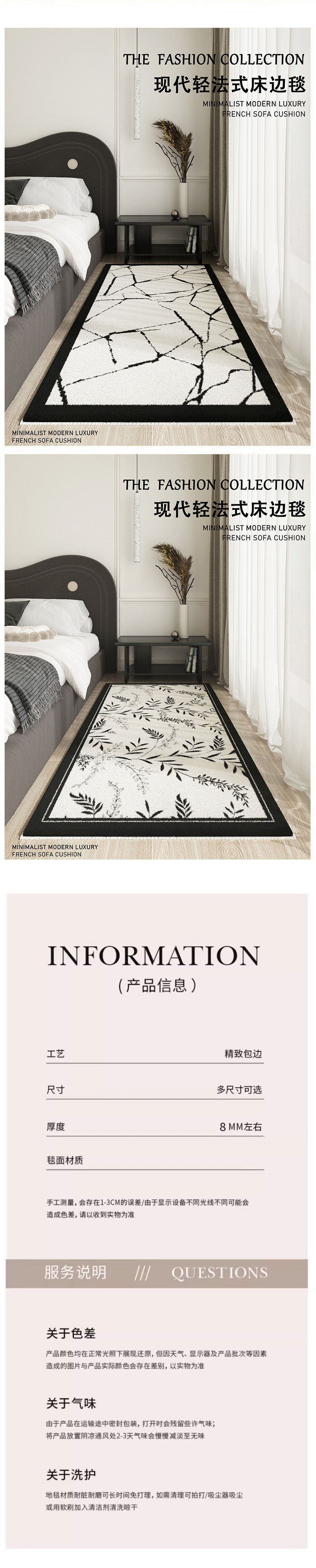 Modern High-End Bedside Rug, Bedroom Carpet, Cloakroom Floor Mat, Under-Bed, In-Front-Of-Bed, Hallway, Light Luxury, Thickened, Non-Slip, New Style