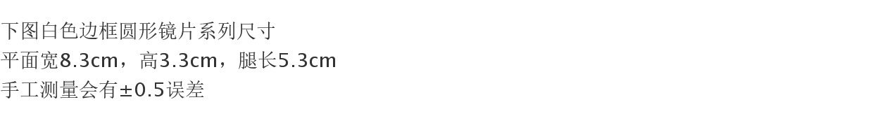 颜色分类 黑框黑片9cm,雪白9cm,百搭黑9cm,奶油黄9cm,文艺透明9cm,森林绿9cm,稻香茶9cm,果冻粉9cm,雾霾蓝9cm,渐变蓝粉9cm,渐变粉黄9cm,黄色9cm,黑框透8cm,中国红8cm,黑框无镜片8cm,小鸡黄8cm,金框透8cm,樱粉8cm,薰衣草紫8cm,渐变粉黄8cm,草绿8cm,天空蓝8cm,茶色直径8cm,黑框黑8cm,银框黑直径8cm,金框无镜片直径8cm,银框无镜片8cm,金框黑直径8cm,大众黑8cm,中国红8.3cm,暖黄8.3cm,樱花粉9cm,文艺透8.3cm,天空蓝8.3cm,夏绿8.3cm,熏衣紫8.3cm,银框透8cm,透明总宽度4.5cm,黑框总宽度4.5cm,透明总宽度6.5cm,黑框总宽度6.5cm