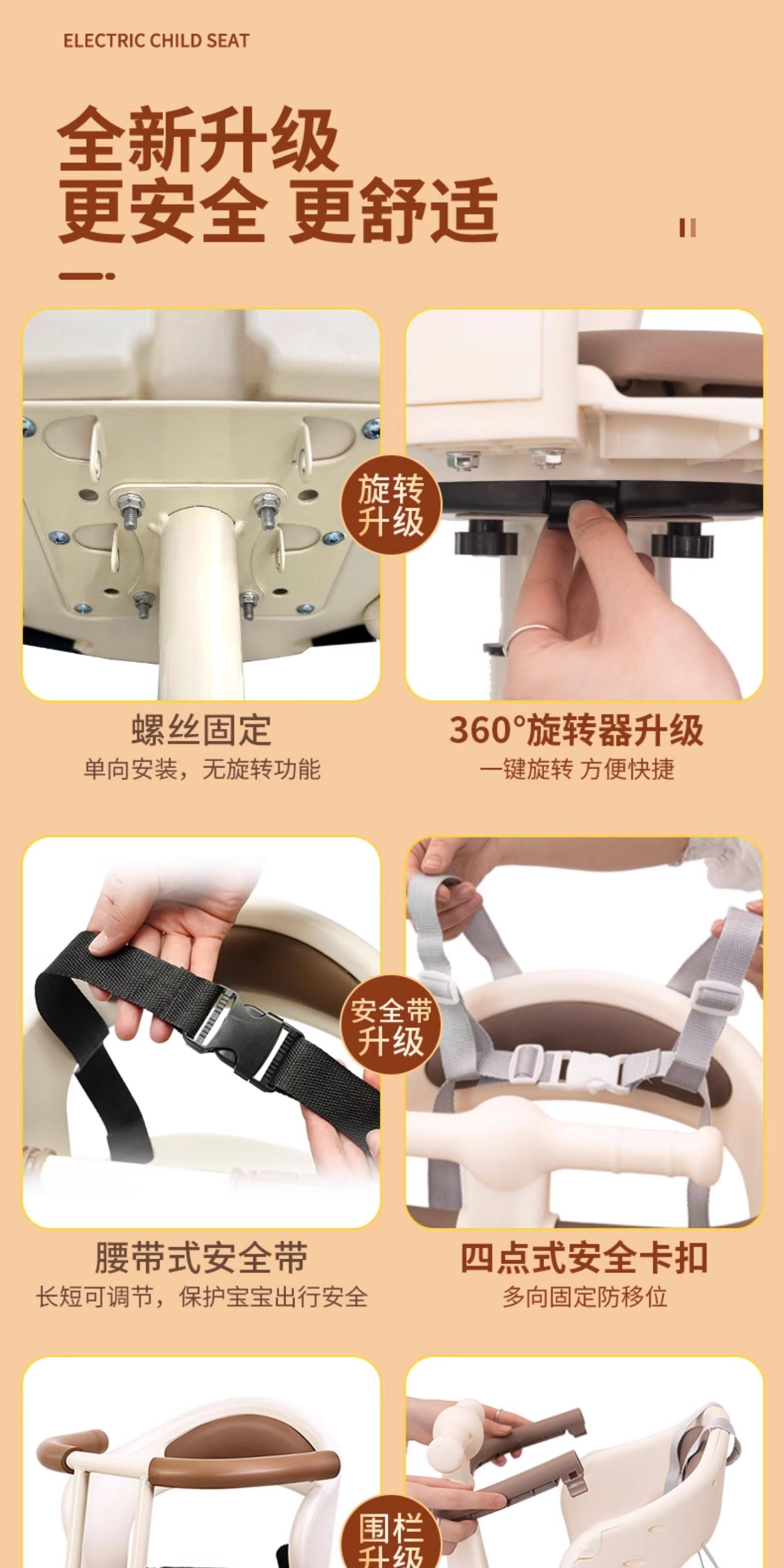 Electric Vehicle Child Seat Front-Mounted Baby Electric Bike Infant Safety Seat Motorcycle Child Yadea Scooter