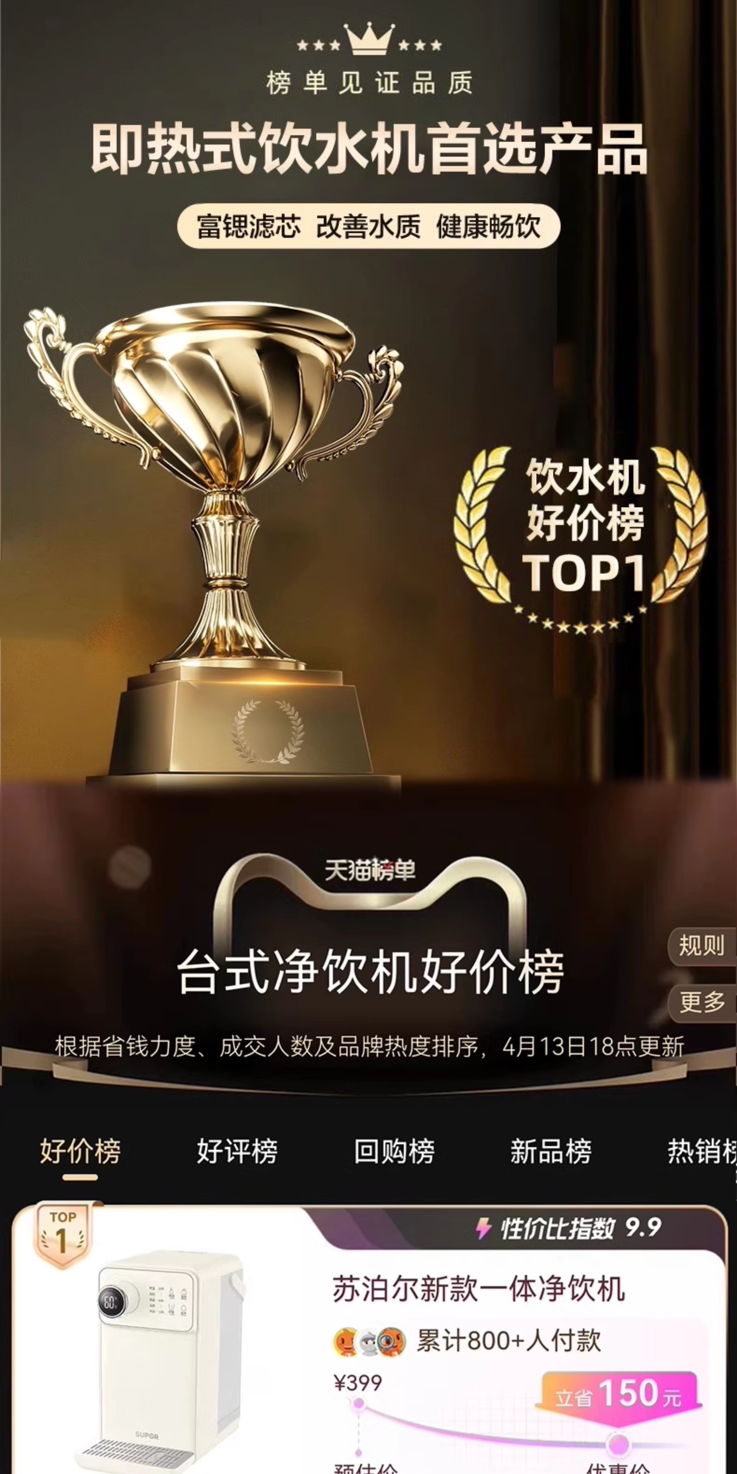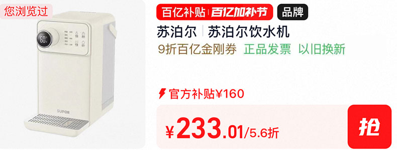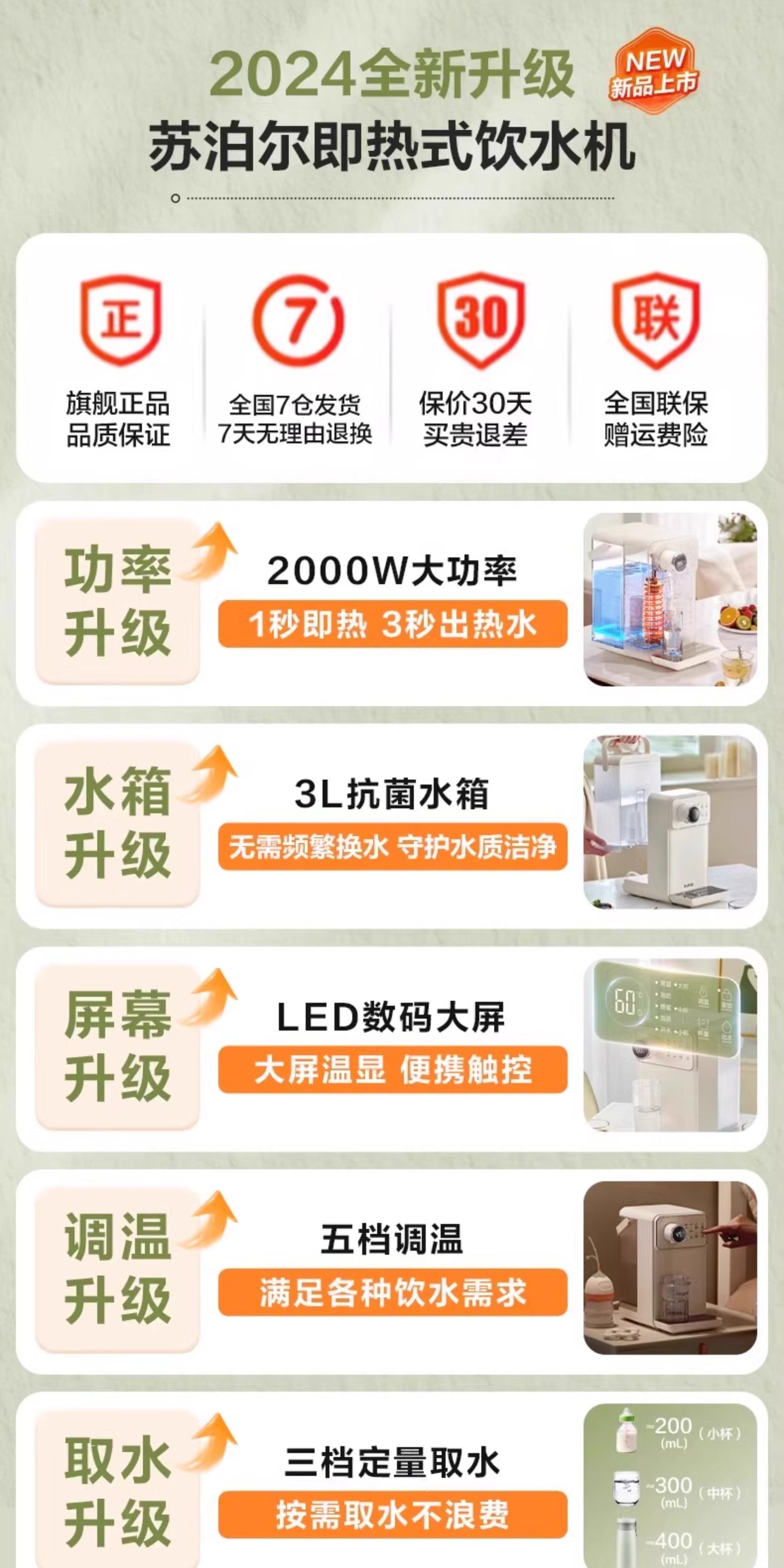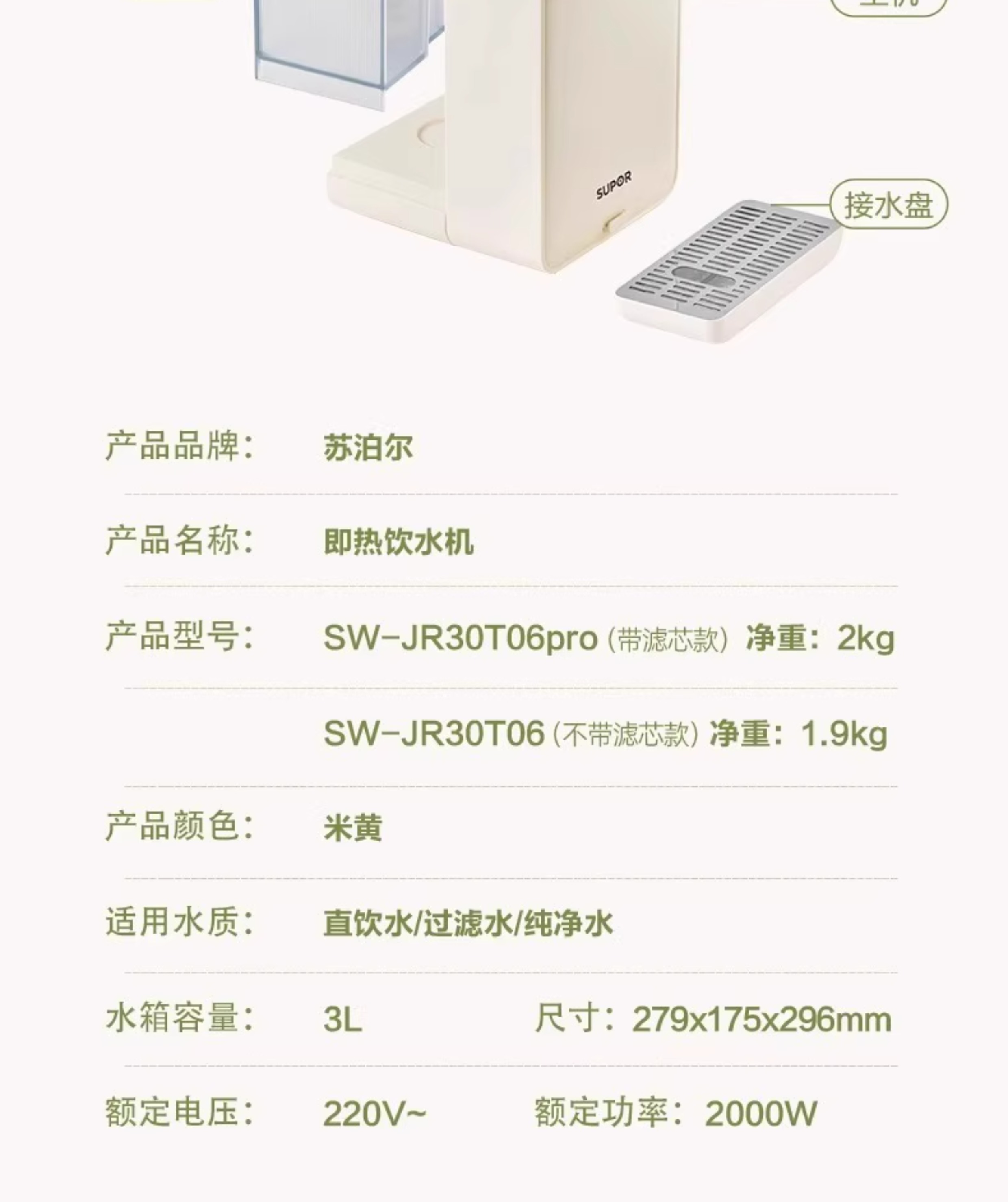 苏泊尔即热式饮水机新款家用直饮小型净饮机台式热水机一体电水壶
